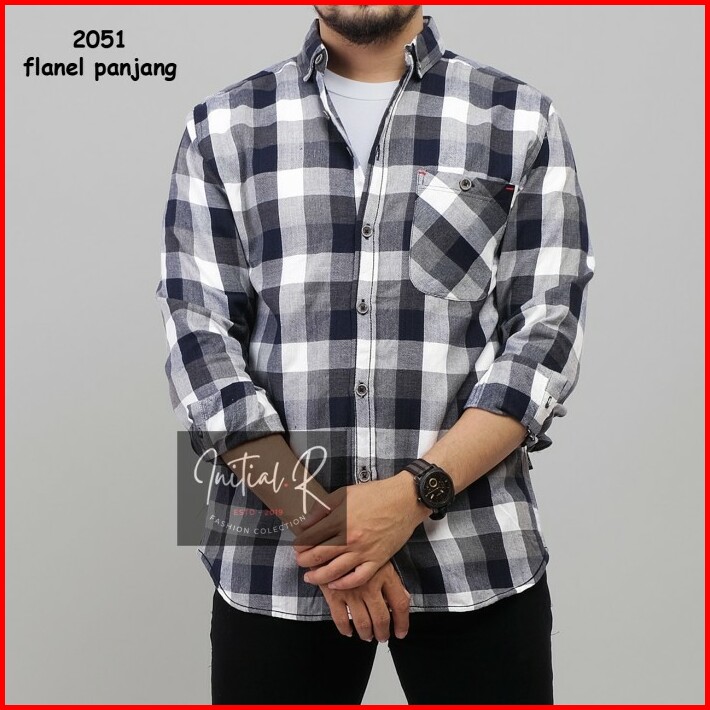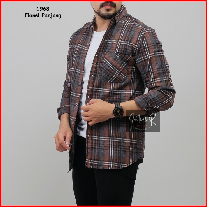 Kemeja Flanel Lengan Panjang Kemeja Pria Flanel Unisex Casual Kotak