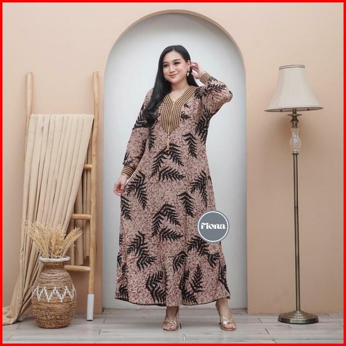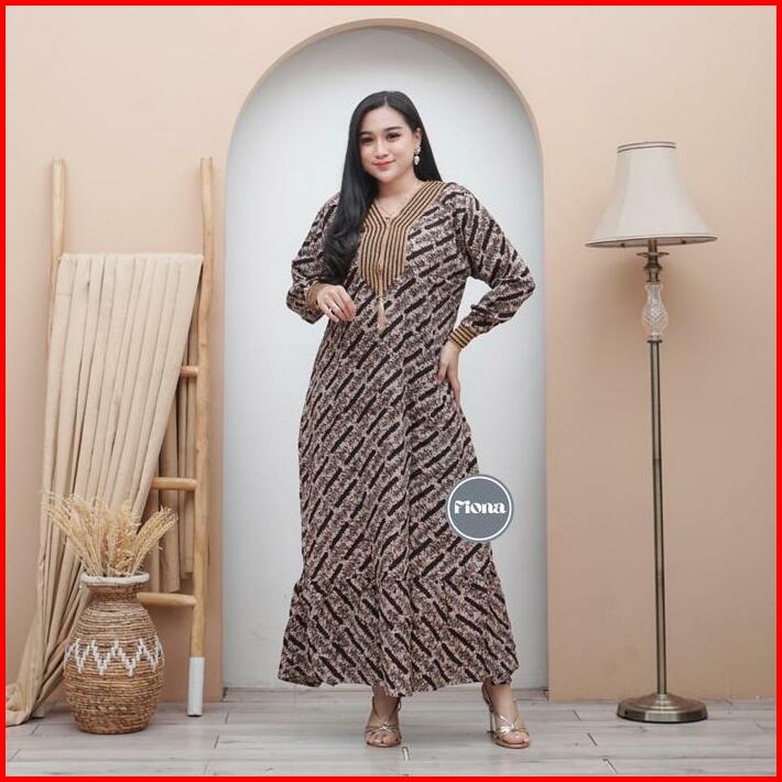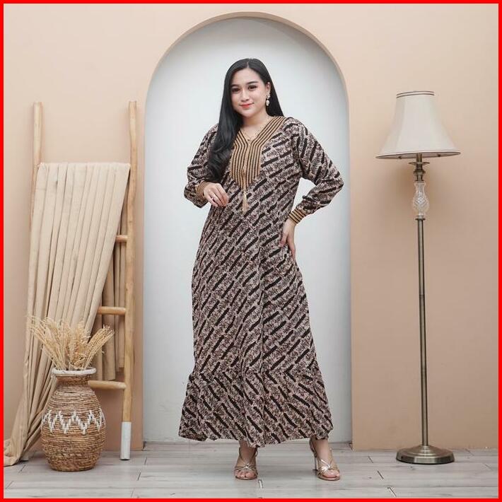 Gamis Renda Sultan Coklatan Rayon Premium Busui Motif Cap Terbaru Karet Muslim