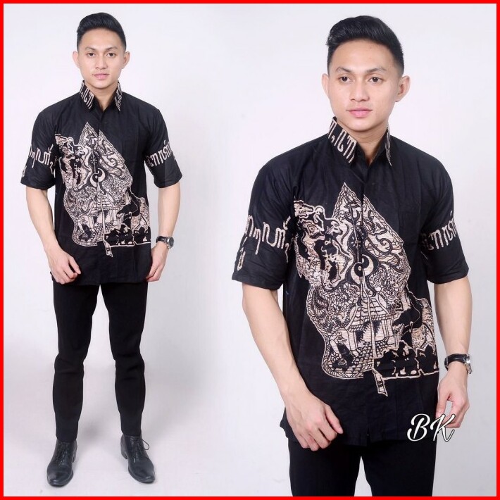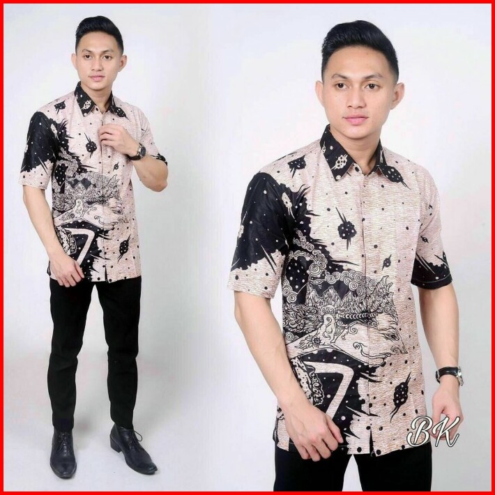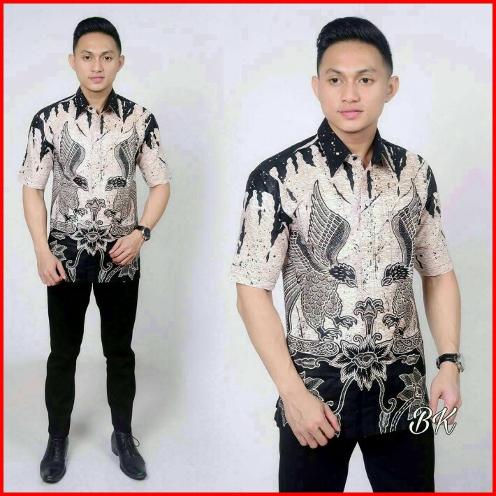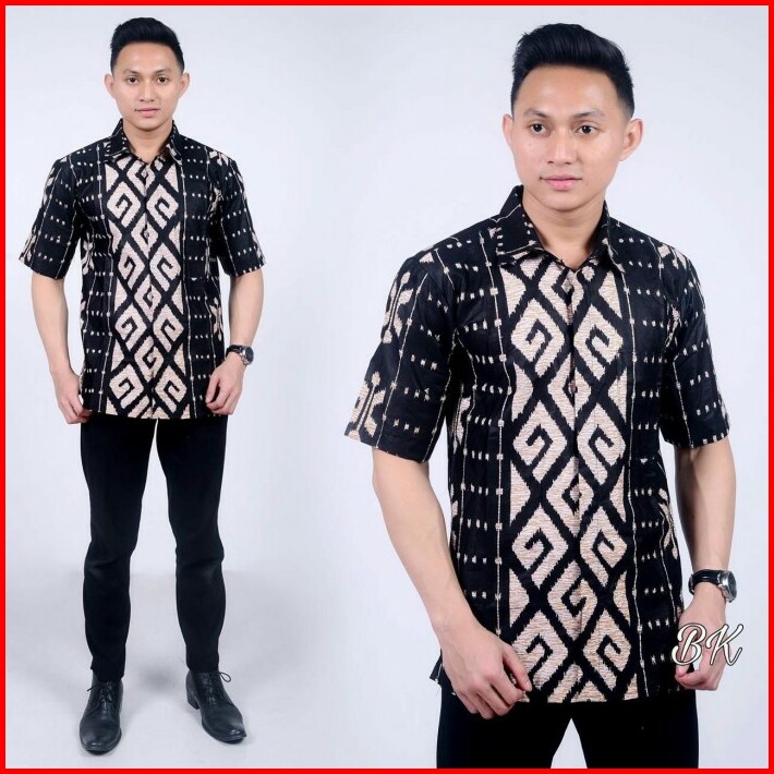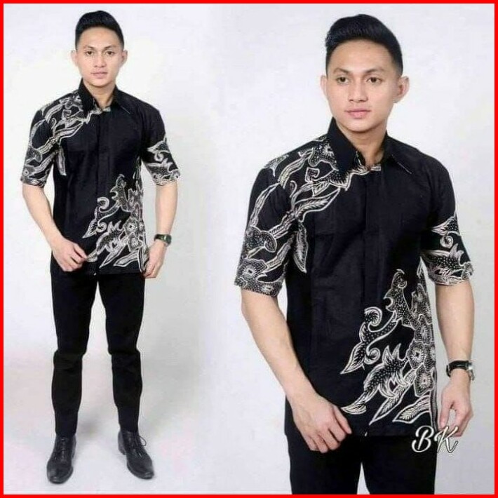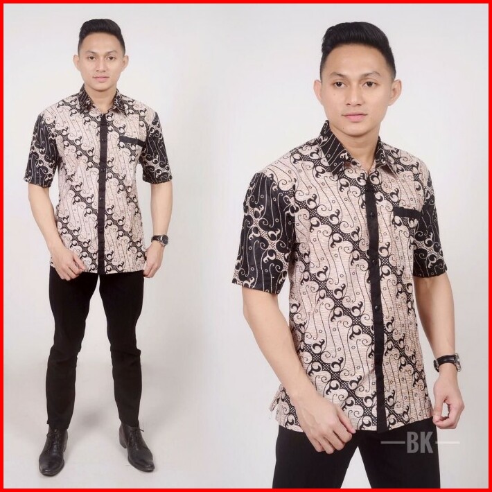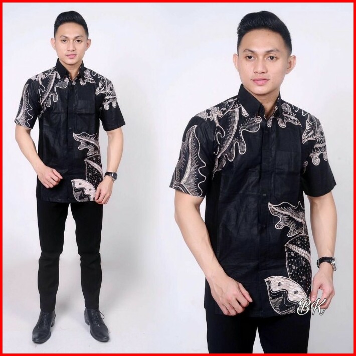 Promo Kemeja Batik Kekinian Lengan Pendek Motif Hitam Manis Premium