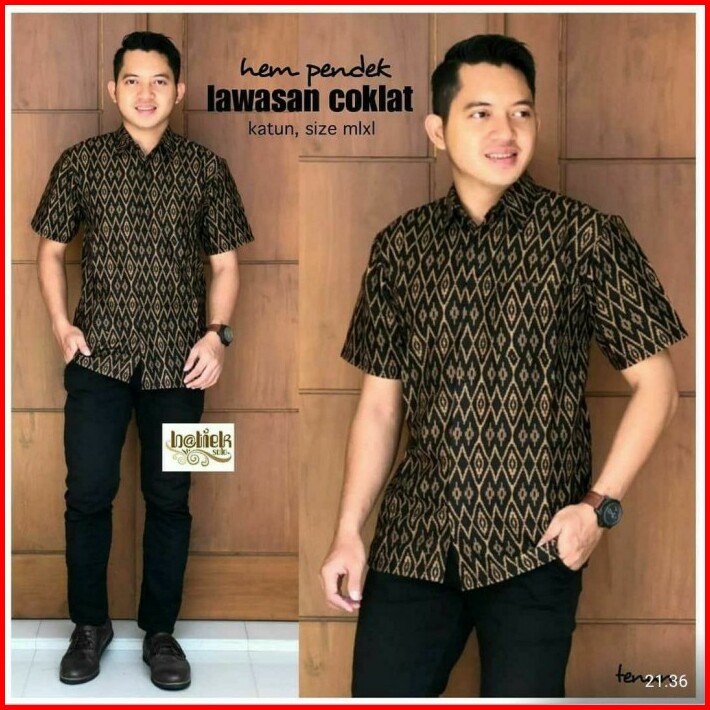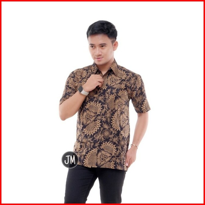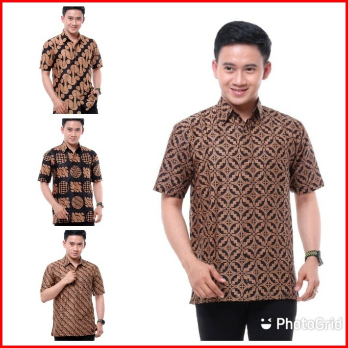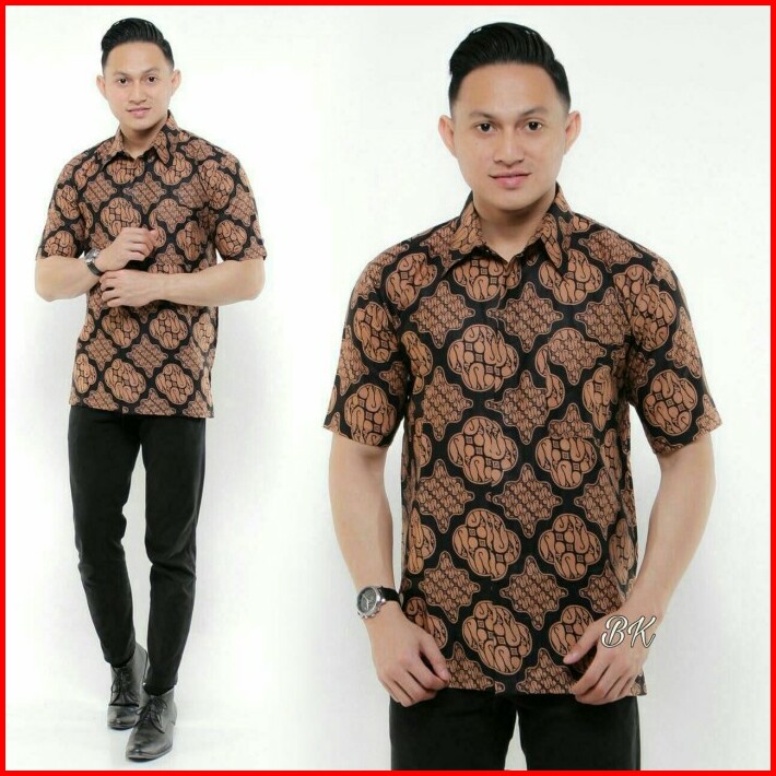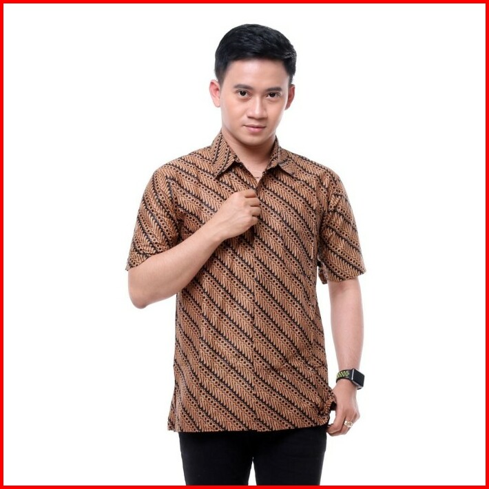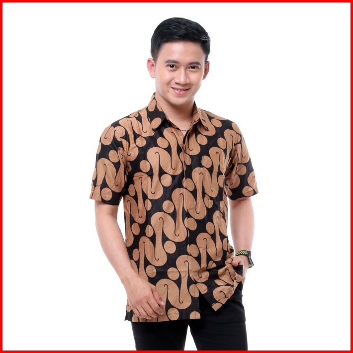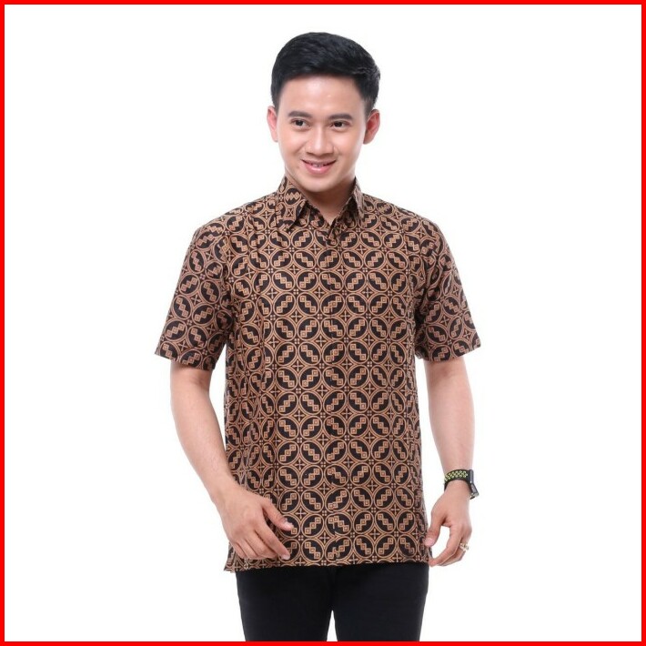 Kemeja Batik Pria Lengan Pendek Batik Halus Warna Coklat Gelap Elegan