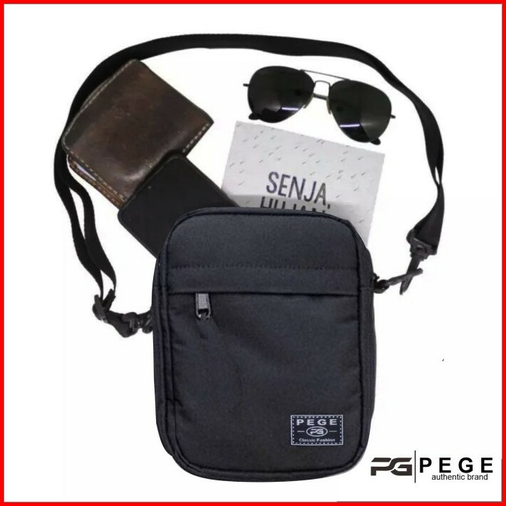 Tas Selempang Polos Pria Pege Slempang Hitam Kasual