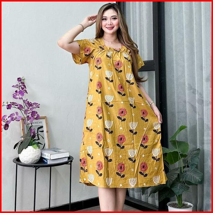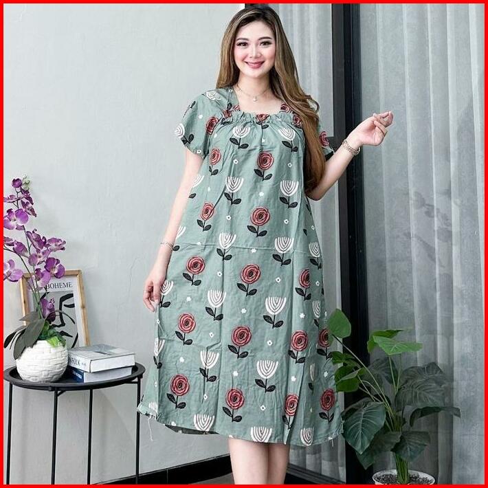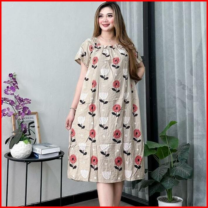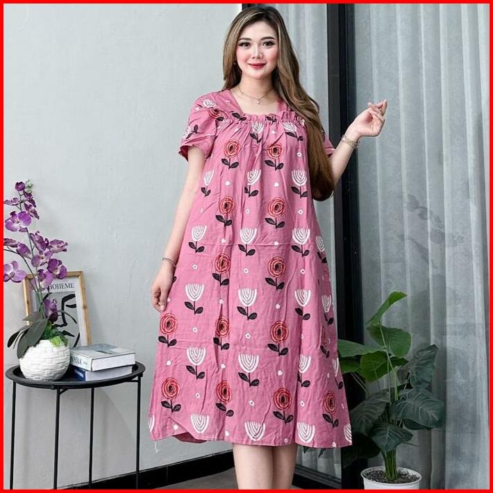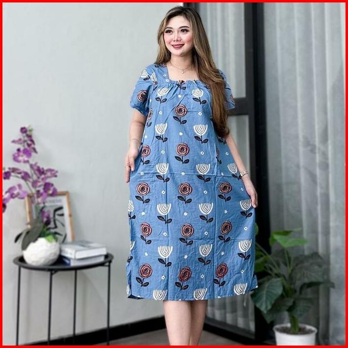 Daster Rayon Fuji Jumbo Ld 110 Kekinian Busui Karet Depan Lengan Pendek Motif Chika