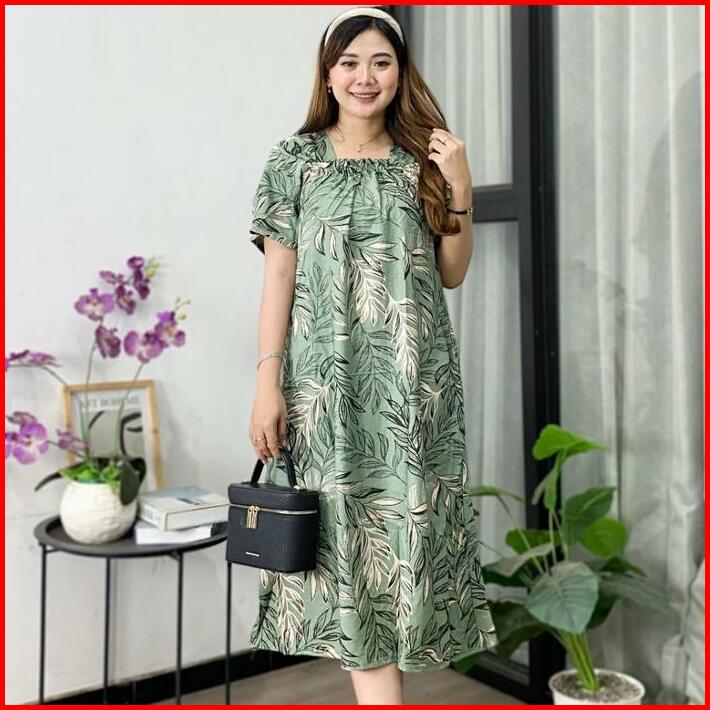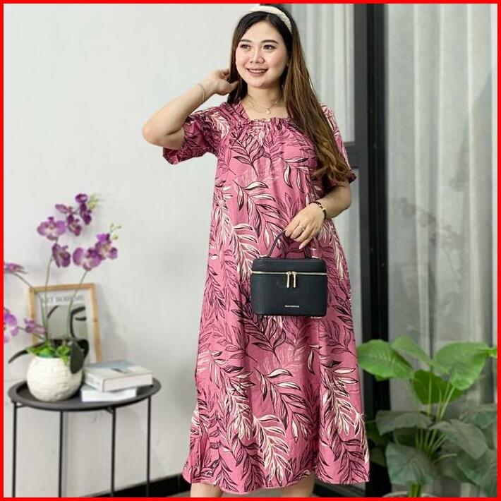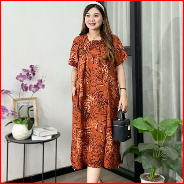 Daster Rayon Fuji Jumbo Ld 110 Kekinian Busui Karet Depan Lengan Pendek Motif Rina