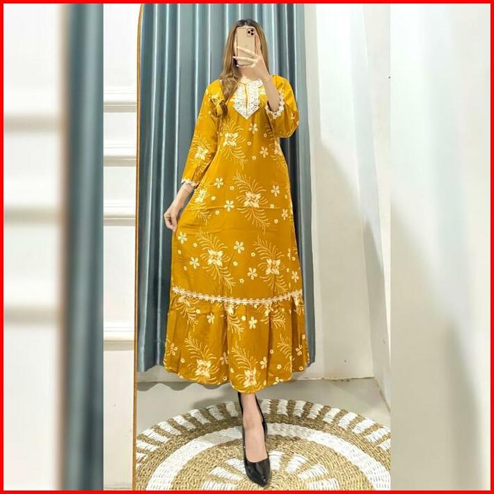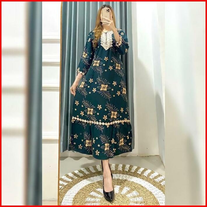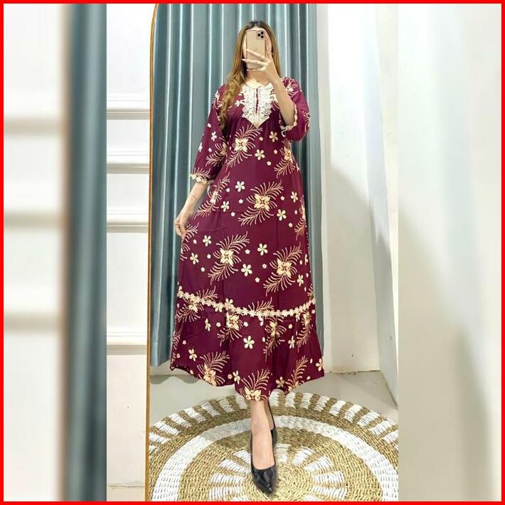Gamis Renda Salma Viral Kekinian Busui Resleting Depan Lengan 7 8
