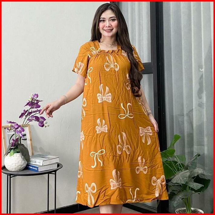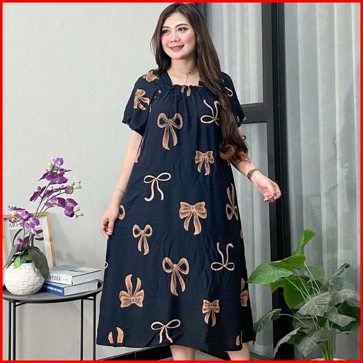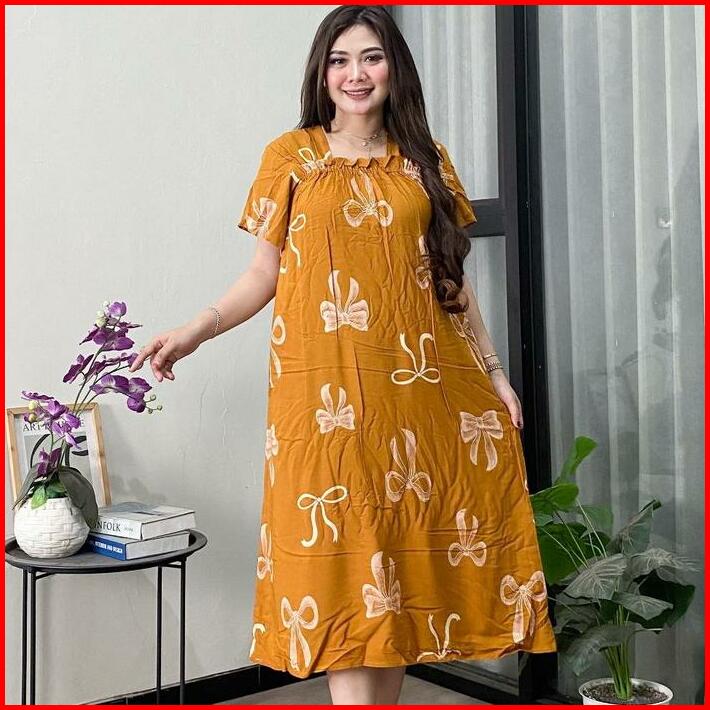 Daster Rayon Fuji Jumbo Ld 110 Kekinian Busui Karet Depan Lengan Pendek Motif Lisa