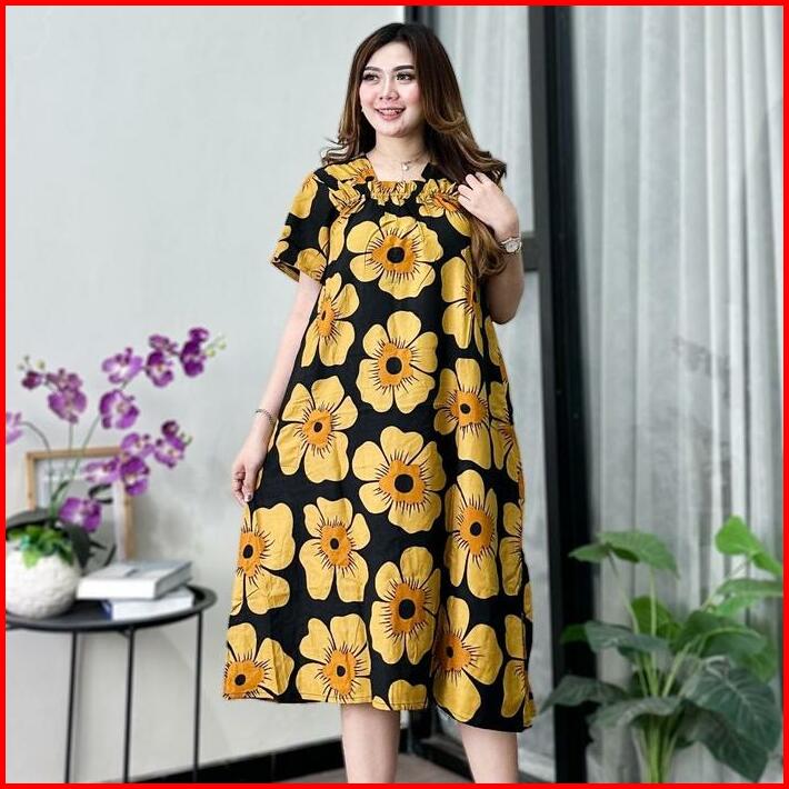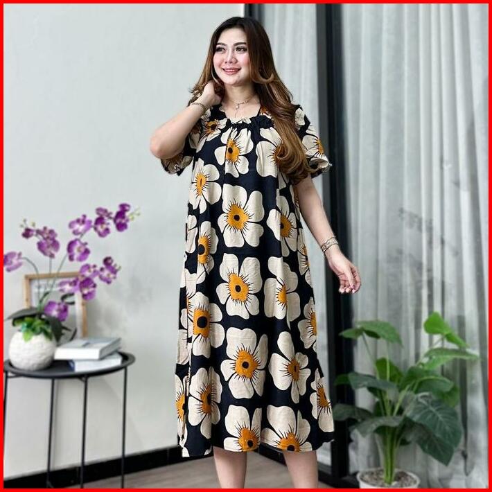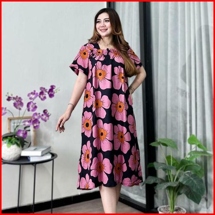Daster Rayon Fuji Jumbo Ld 110 Kekinian Busui Karet Depan Lengan Pendek Motif Inem