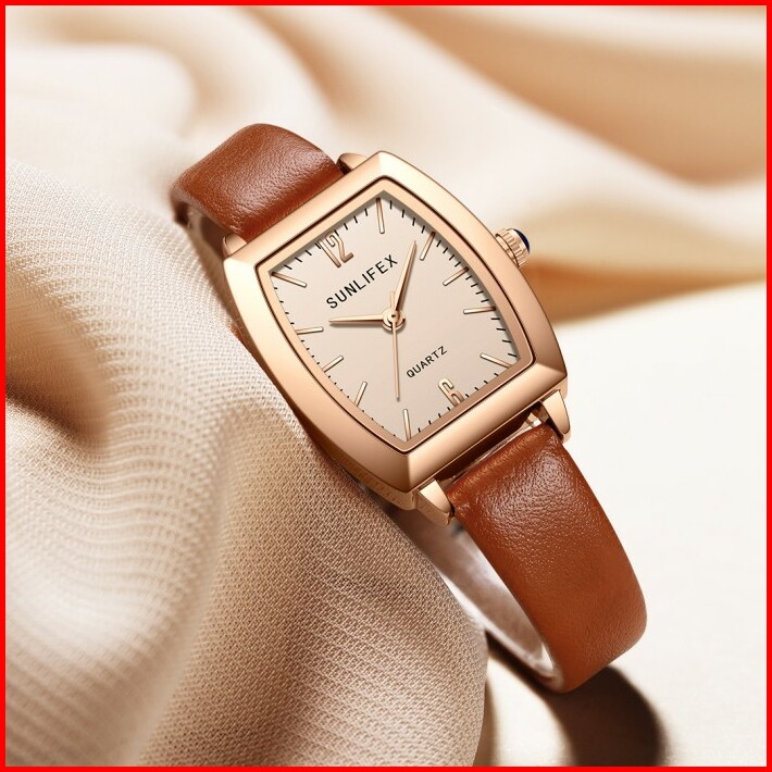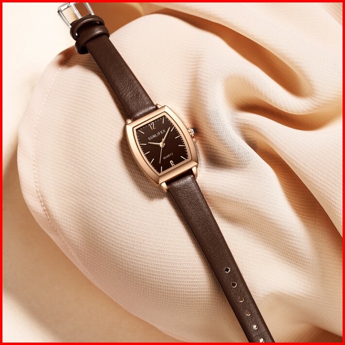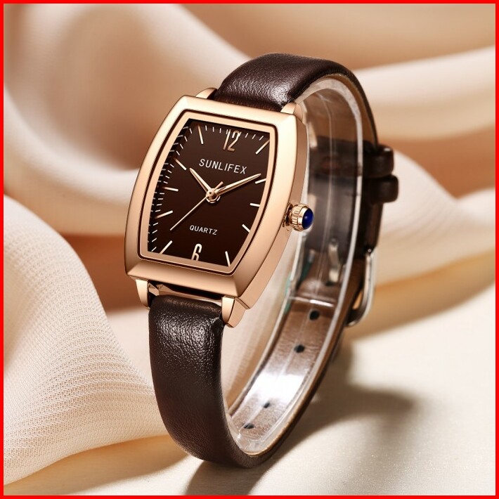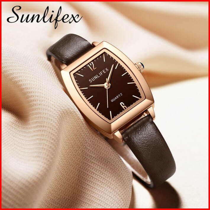 Sunlifex Jam Tangan Wanita Original Square Dial Tali Kulit Anti Air