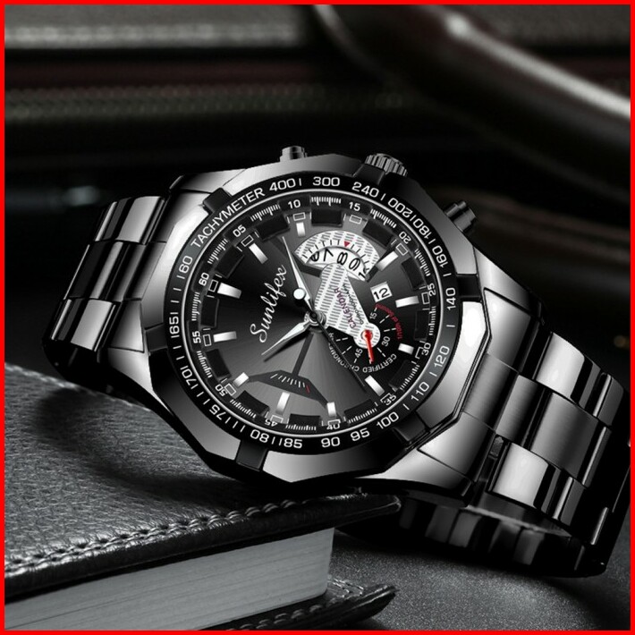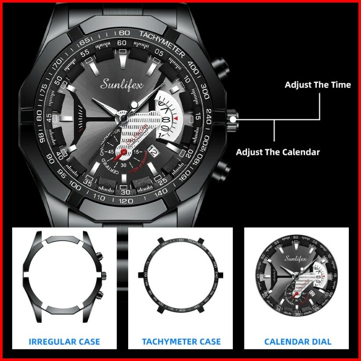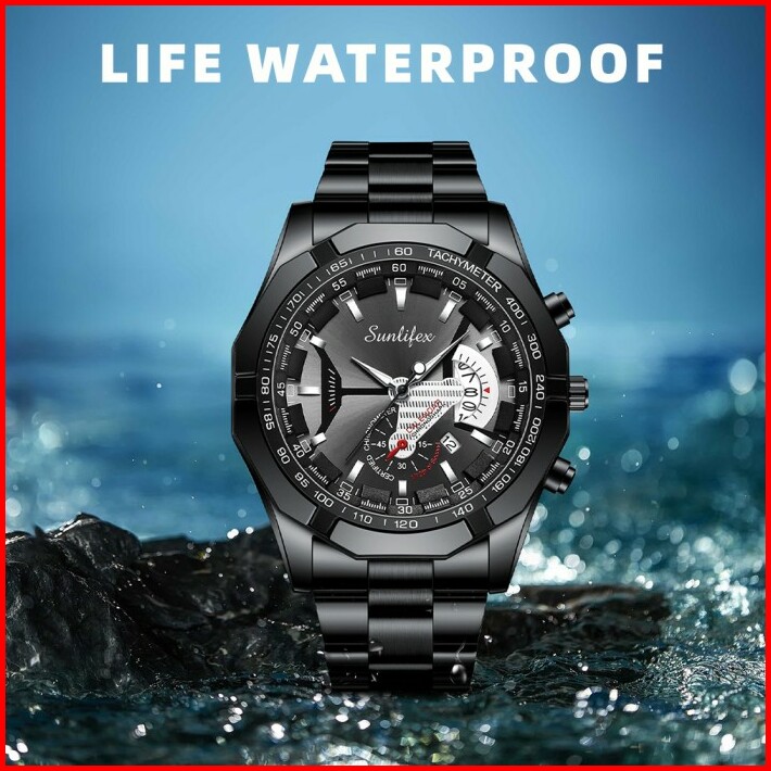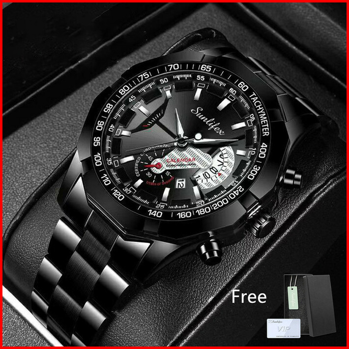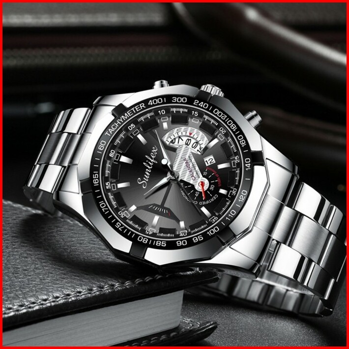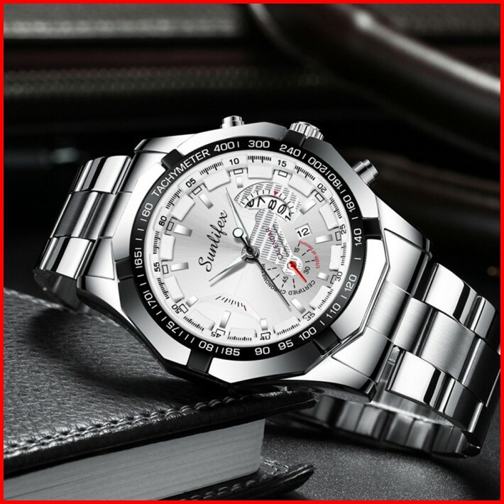 Sunlifex Jam Tangan Pria Kalender Tali Stainless Steel Bercahaya