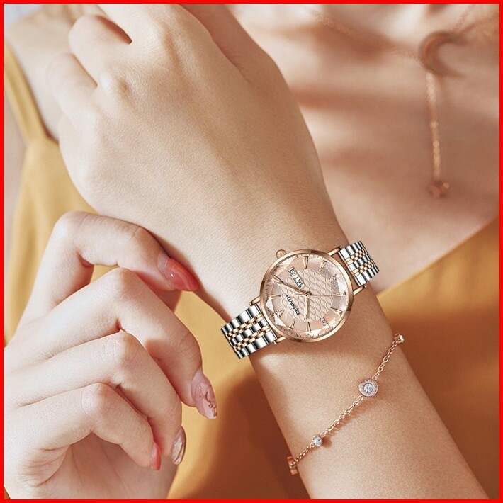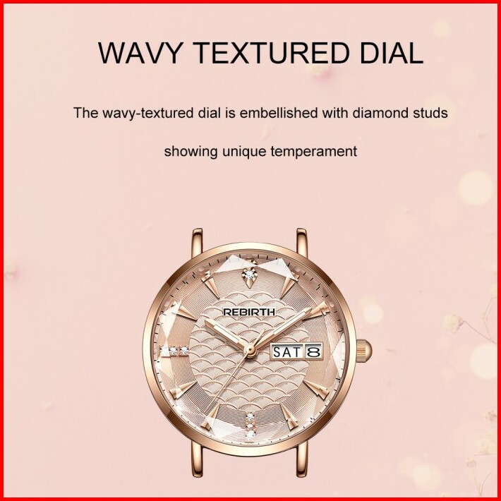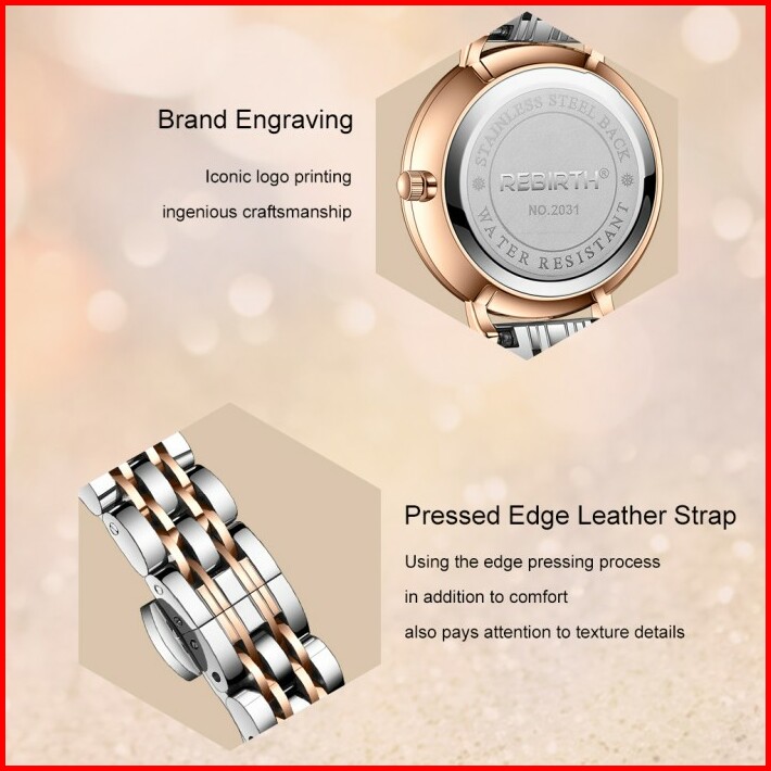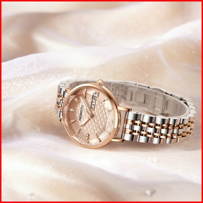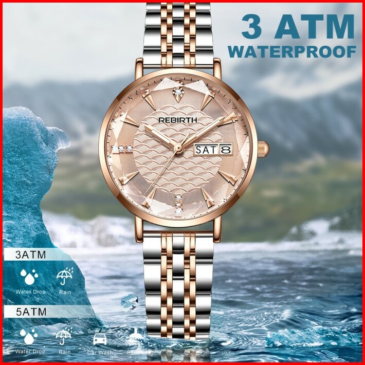Rebirth Jam Tangan Wanita Anggun Tali Stainless Steel Tahan Air Kuarsa Jam Tangan Cewek