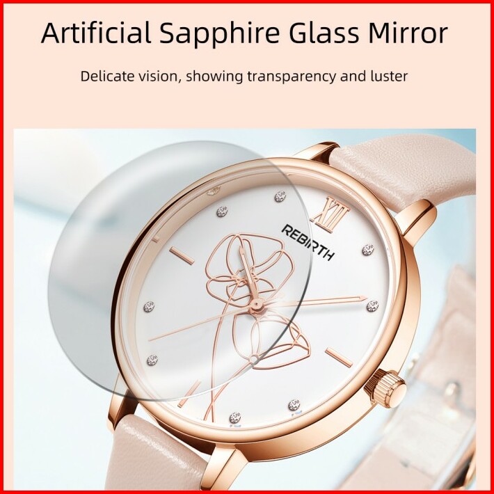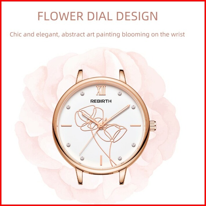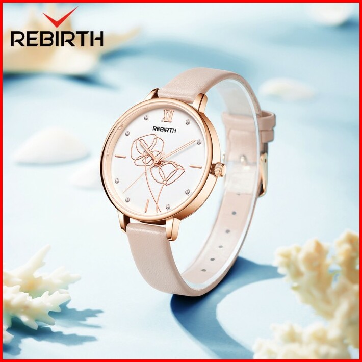 Rebirth Jam Tangan Wanita Tali Kulit Anggun Bisnis Display Kuarsa