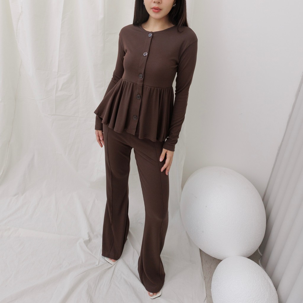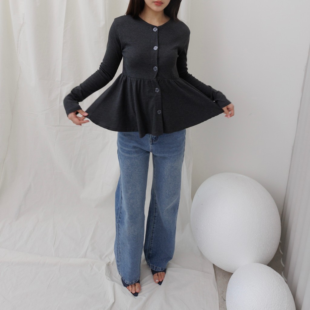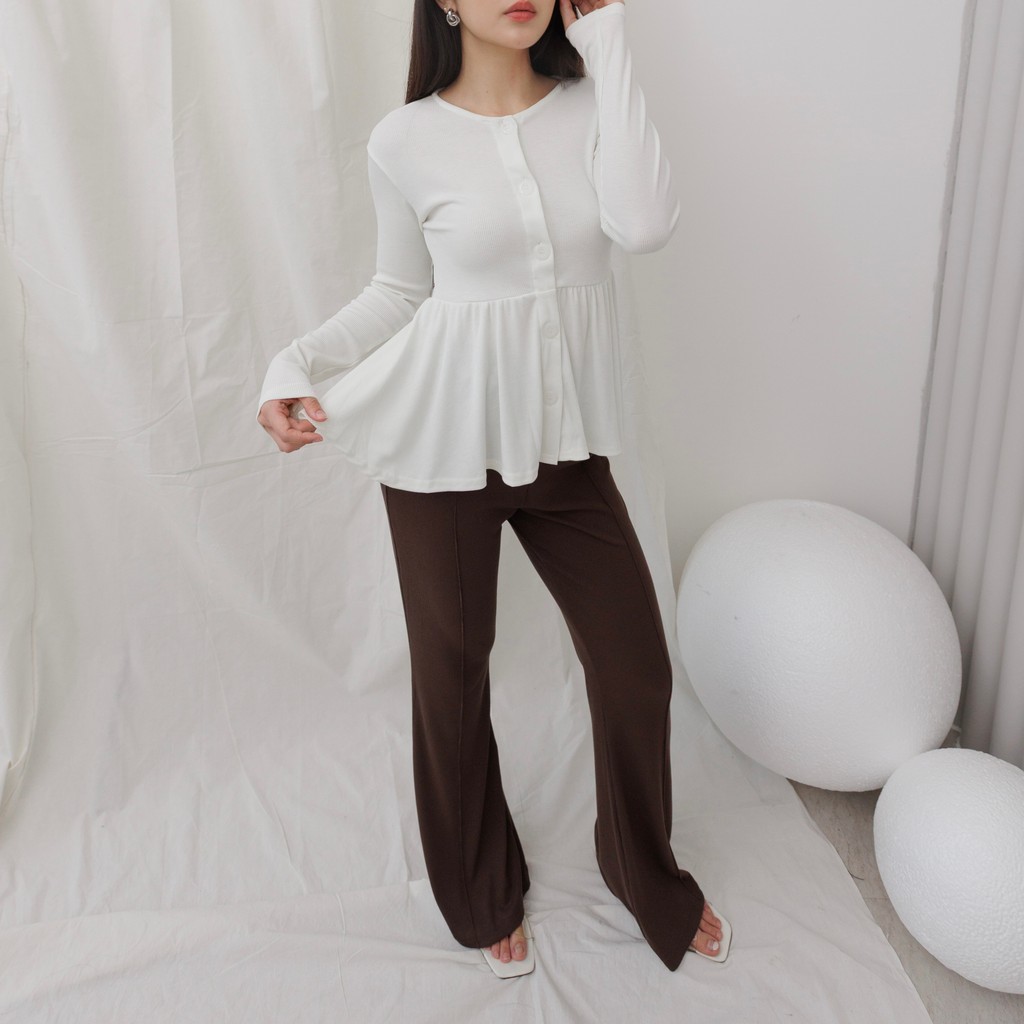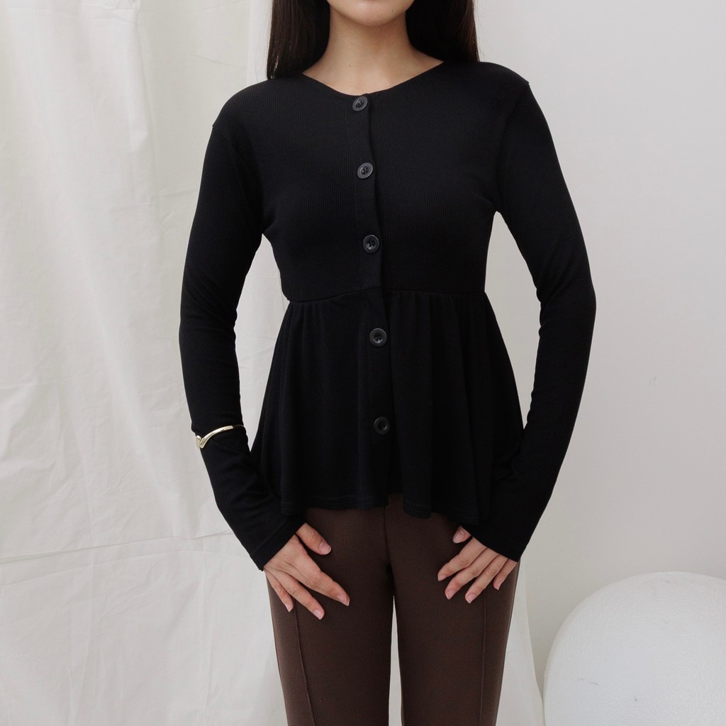 DAISY STUFF AURORA TOP | Atasan Kaos Wanita Basic Lengan Panjang Babydoll Peplum Wanita Korean Top Baju Summer Knit Rib