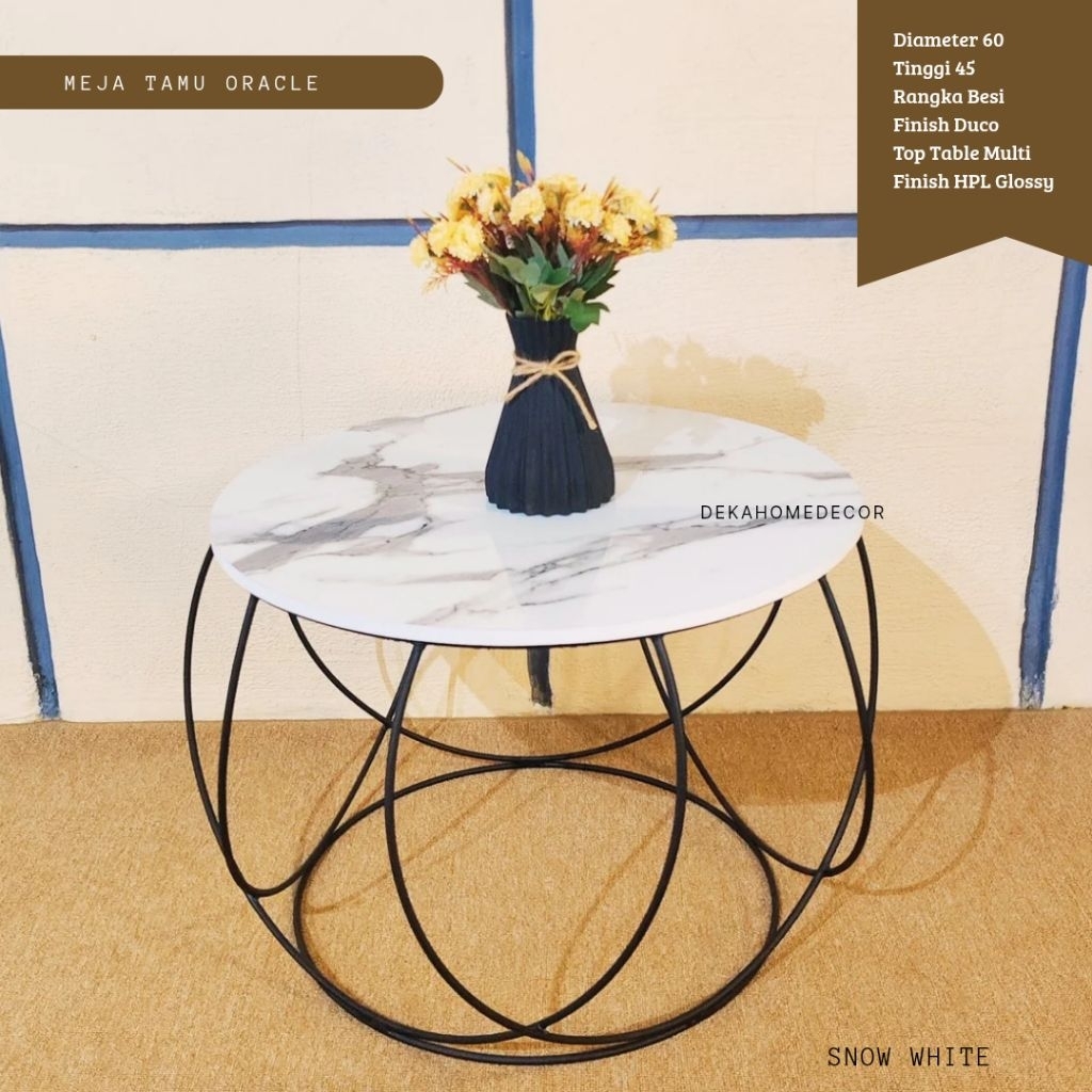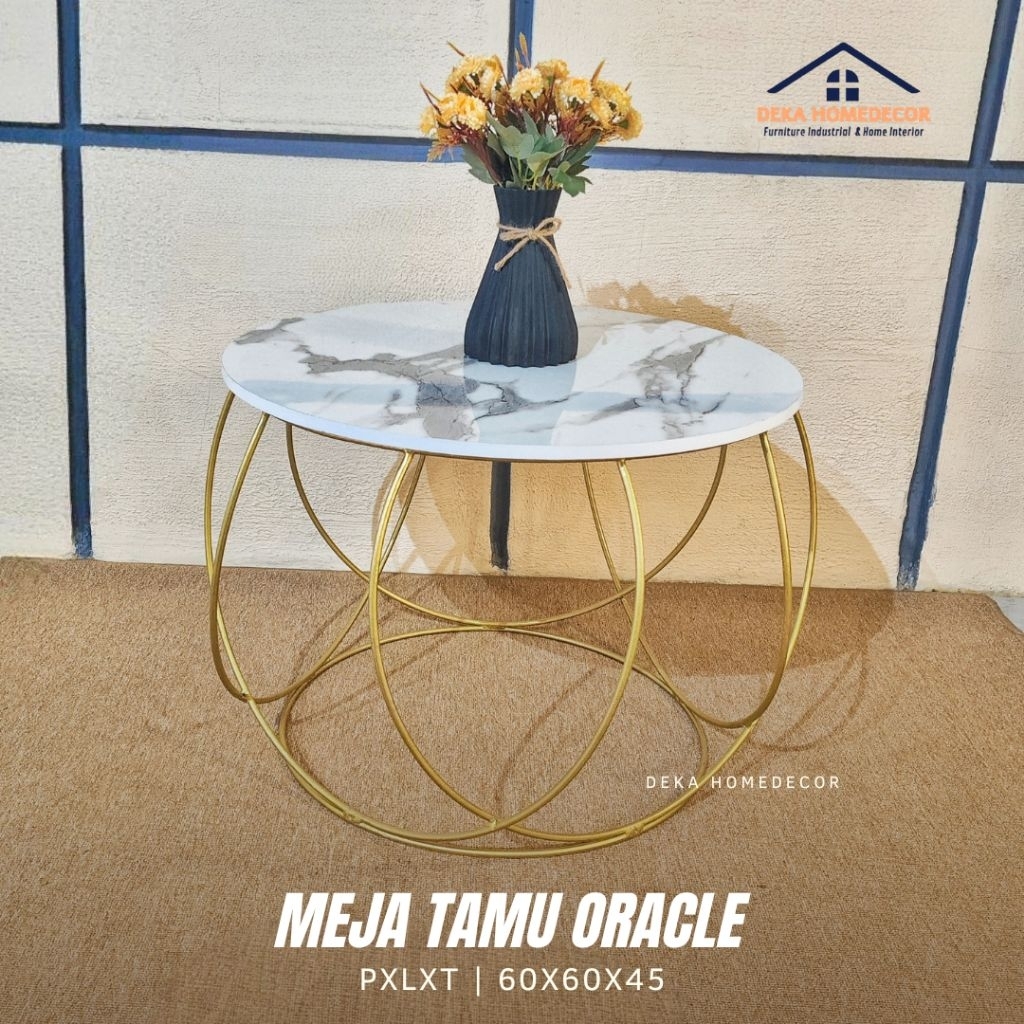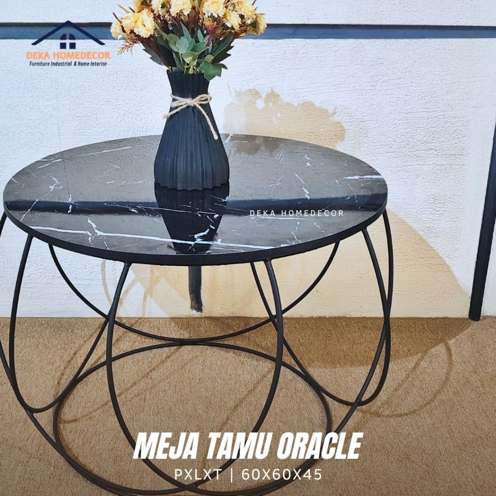 Meja Ruang Tamu Minimalis ORACLE / Meja Bulat Motif Marmer Aesthetic / Meja Besi / Coffe Table Mewah
