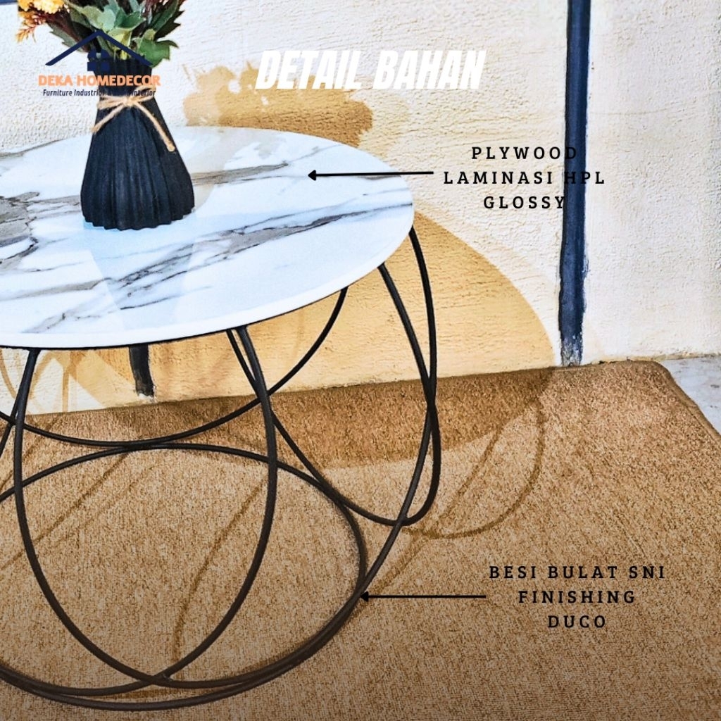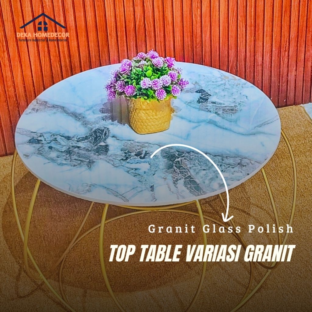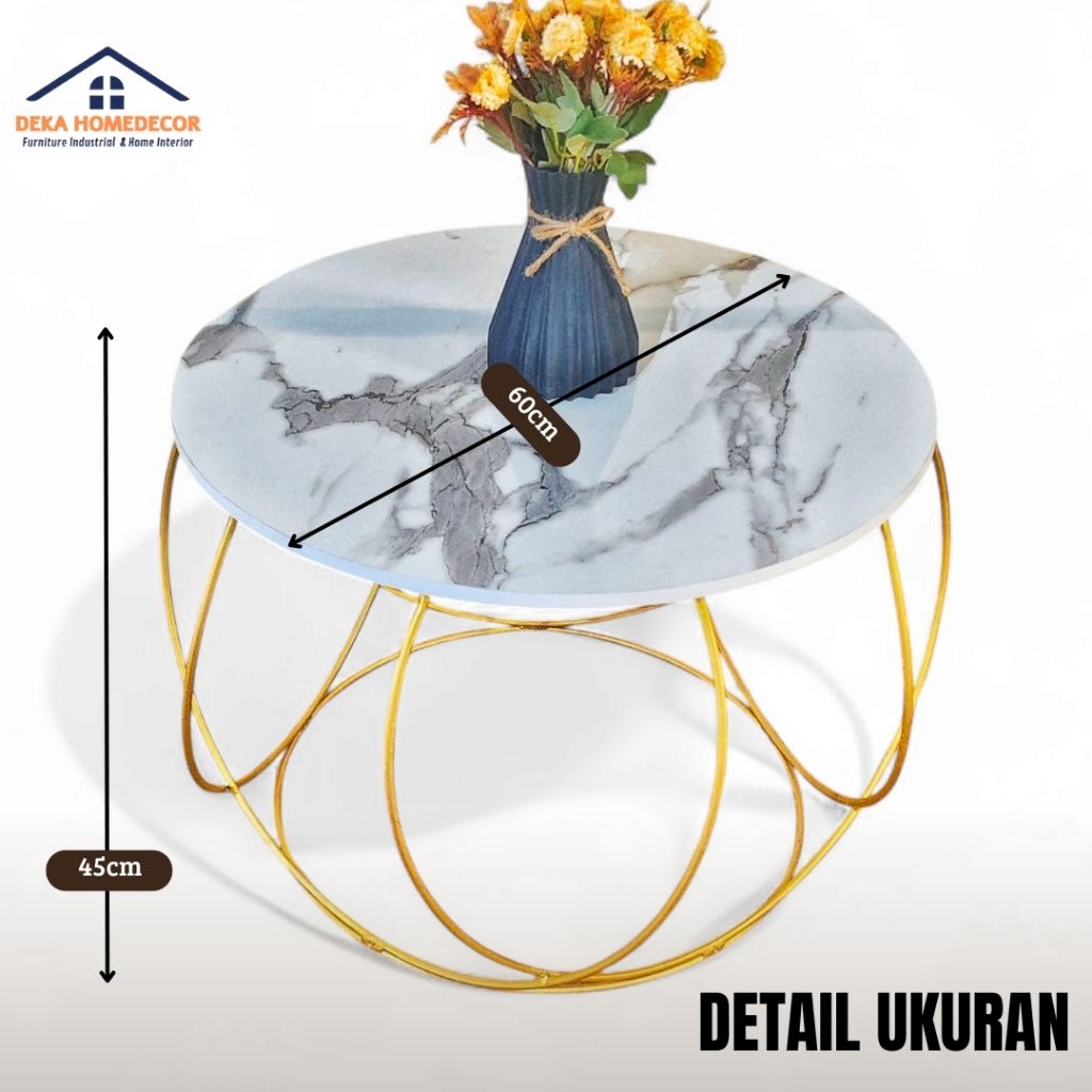 Meja Ruang Tamu Minimalis ORACLE / Meja Bulat Motif Marmer Aesthetic / Meja Besi / Coffe Table Mewah