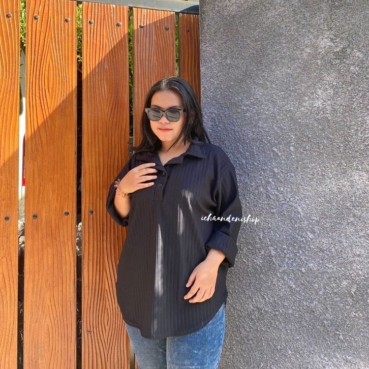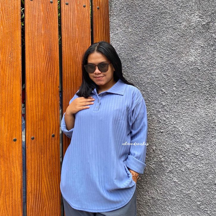 Blouse wanita jumbo/korea/terbaru/import/crop/kekinian/ICH - Naura Top Knit Oval Hornet Jumbo