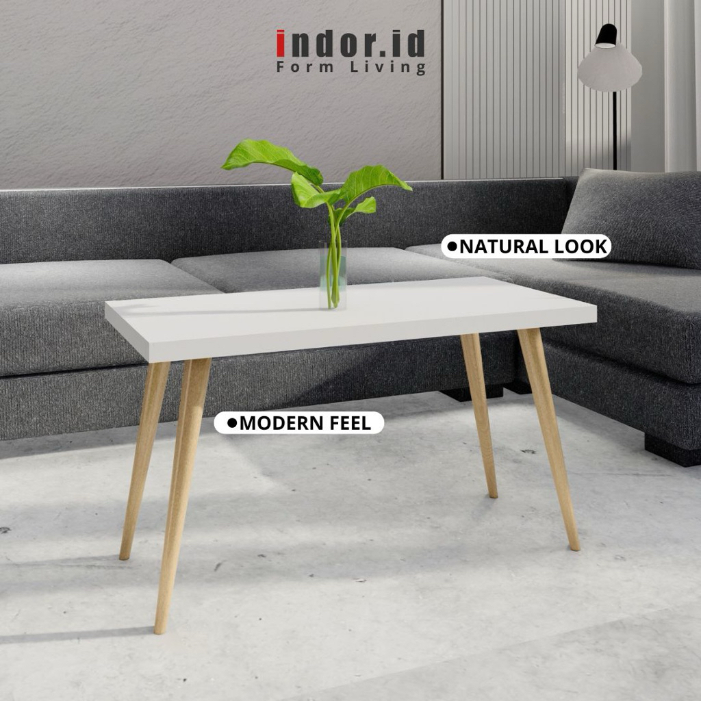 Meja Kotak Serbaguna 40x80 – Top Plywood PVC Sheet & Kaki Jati Asli | Meja Tamu / Teras / Buku Estetik