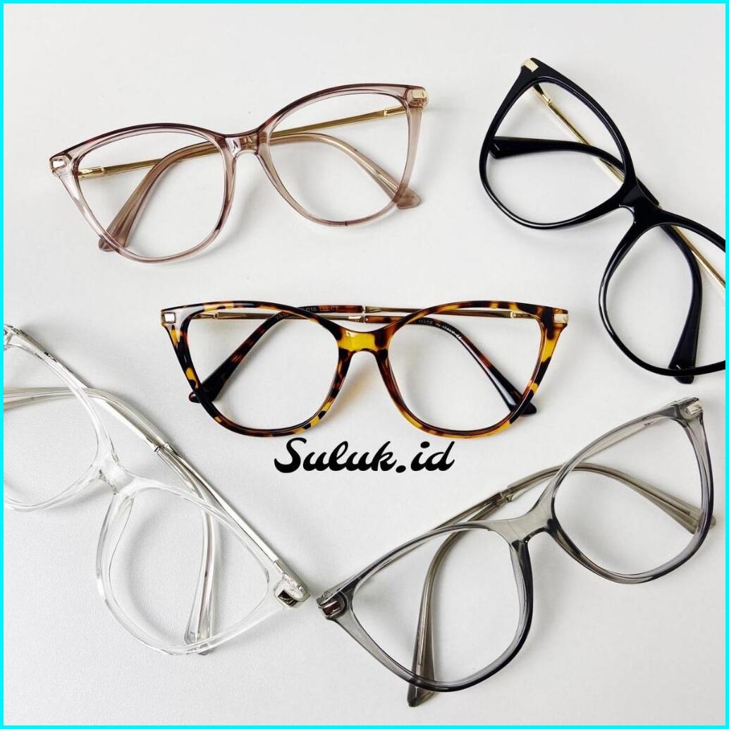 Frame Kacamata Lila - Kacamata Wanita Cat Eye Series Lensa Antiradiasi Blueray Photocromic Bluecromic Normal Minus Free