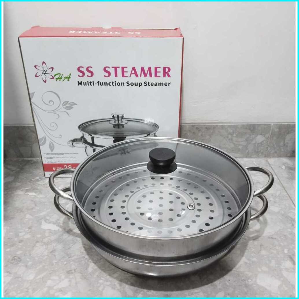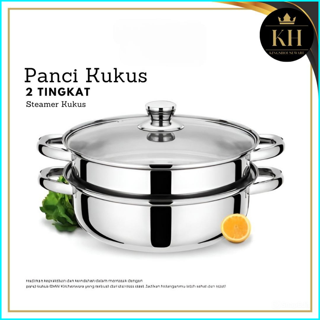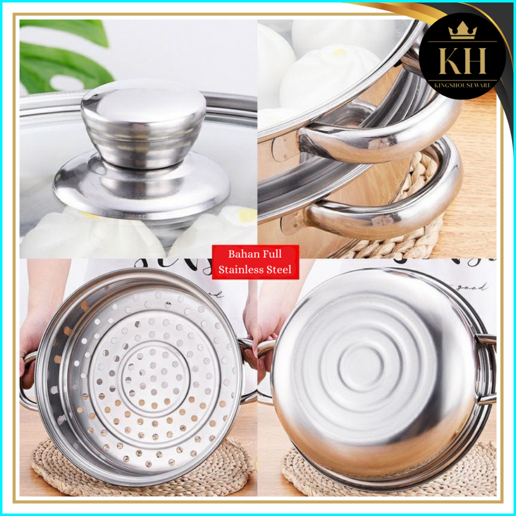 Kh - Steamer Steinless Panci Kukus 2 Tingkat - Alat Kukus 4 Kuping Dengan Tutup Kaca - Kukus Siomay Berkualitas