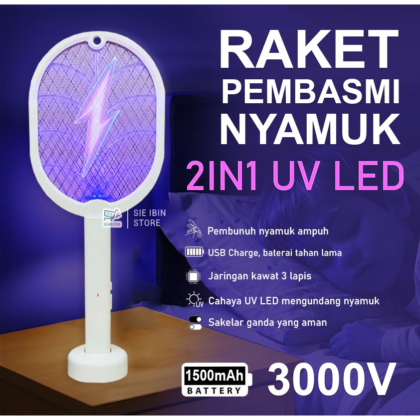 RAKET NYAMUK INSECT KILLER UV LED 2IN1 CANGGIH RECHARGE BATRE 1500MAH EKONOMIS