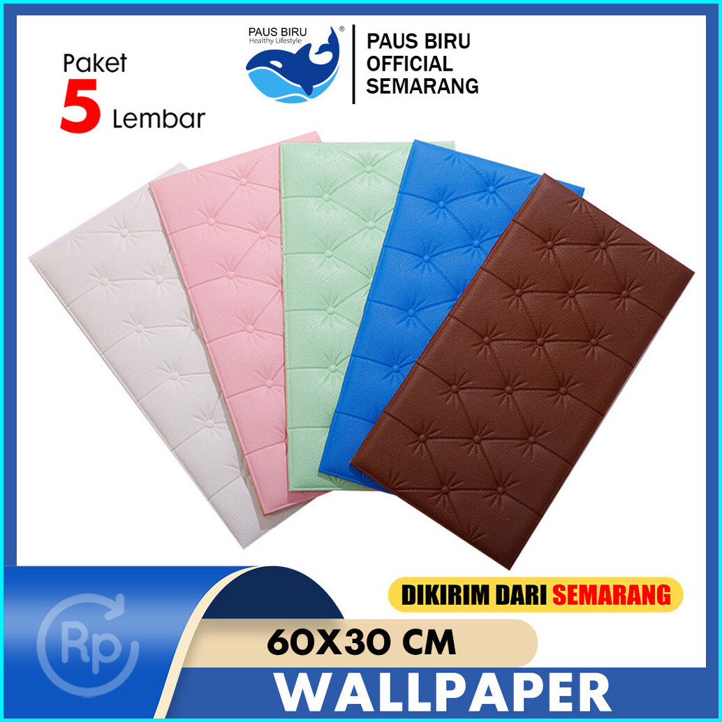 Paus Biru - Paket 5 Lembar Wallpaper 3d Foam Kedap Suara Tahan Air Headboard Bed Wallfoam Empuk Wallpaper Headboard