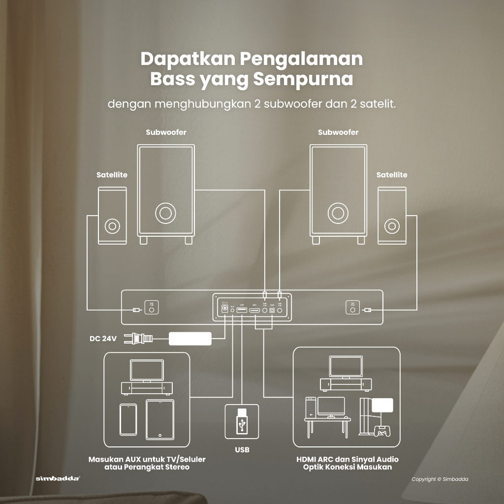 Simbadda CST 907N+ Poseidon Bass Soundbar Dual Subwoofer Speaker Karaoke TV Home Theater Original Official Store