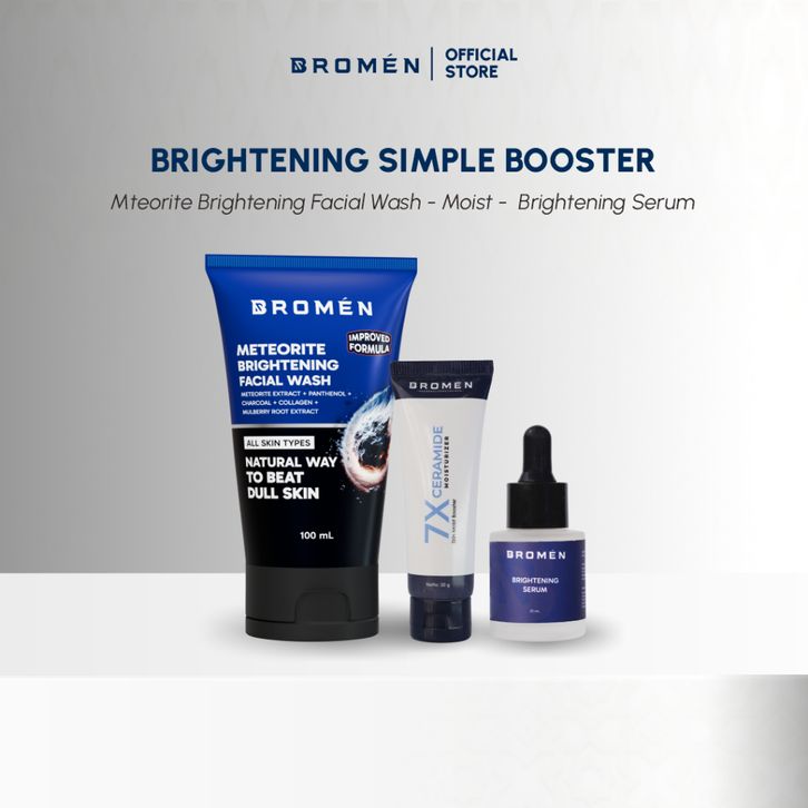 BROMEN Brightening Simple Booster Set Facial Wash + Serum + Moisturizer – Skincare Pencerah Wajah Pria