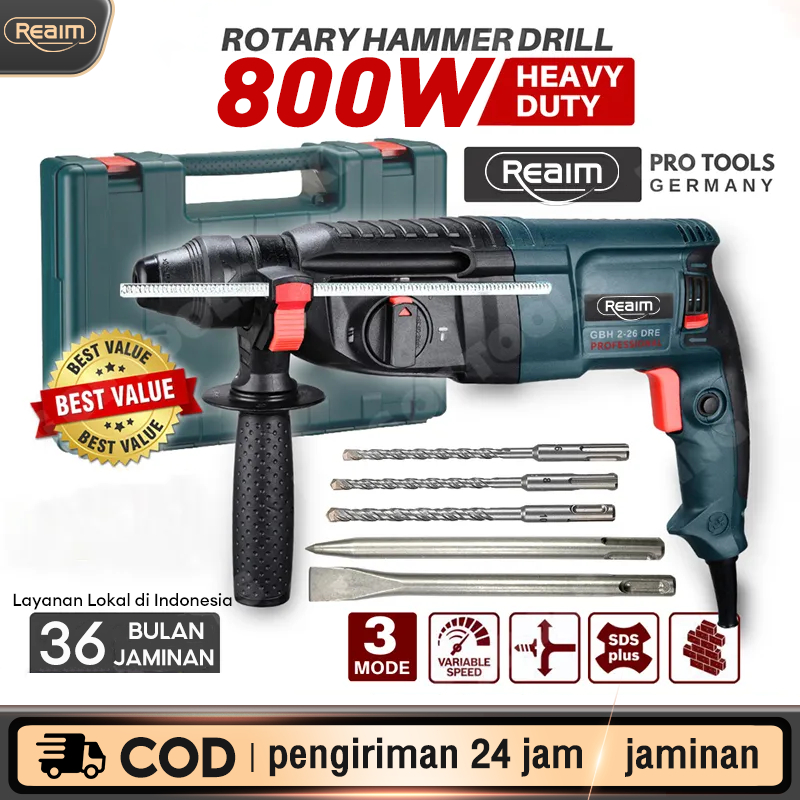 REAIM 【3 in 1】Mesin Bor Bobok Bor Tembok Beton Hammer Drill Bor Rotary Impact Bor Palu Impact Bor Impact Drill