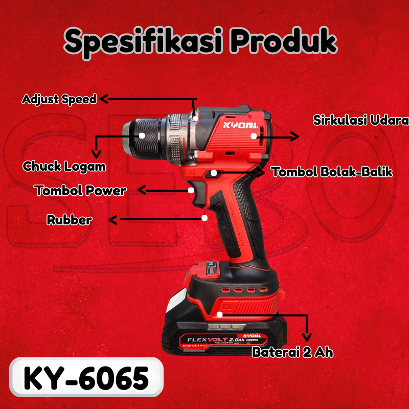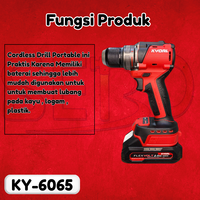 KYOAL Mesin Bor Impact Cordles Portable 2Baterai 21volt Mesin Bor Cas Brushless 10mm - KY-6065