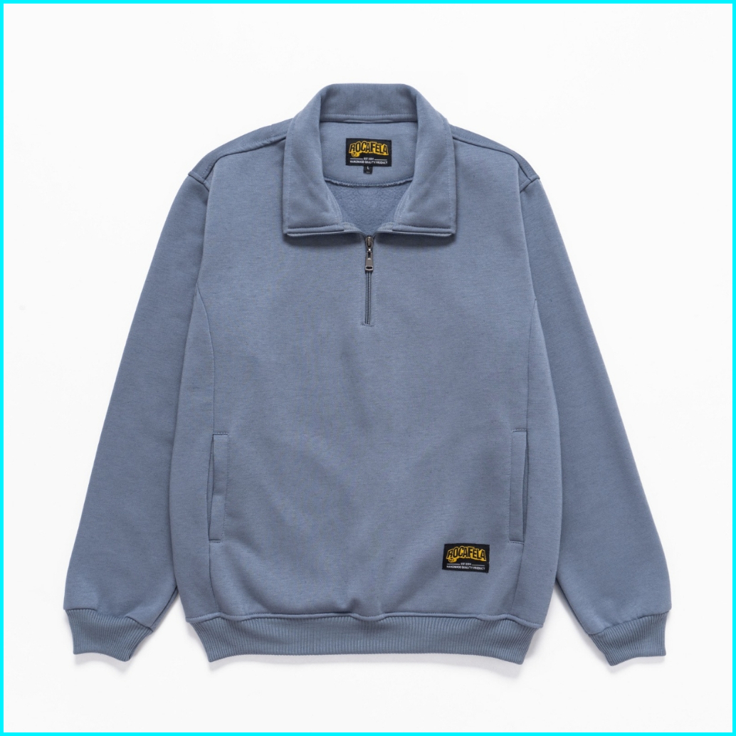 Rocafela Halfzip Pullover Sweater Crewneck Pria Elegan Saku Basic Premium Half Zipper Polos