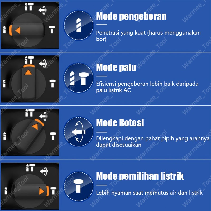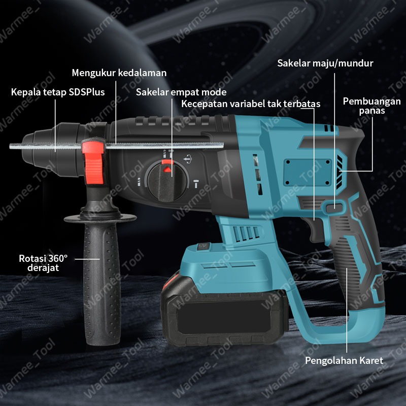 WARMEE Bor Beton jack hammer bor listrik bor beton 3 fungsi original bor hammer drill baterai