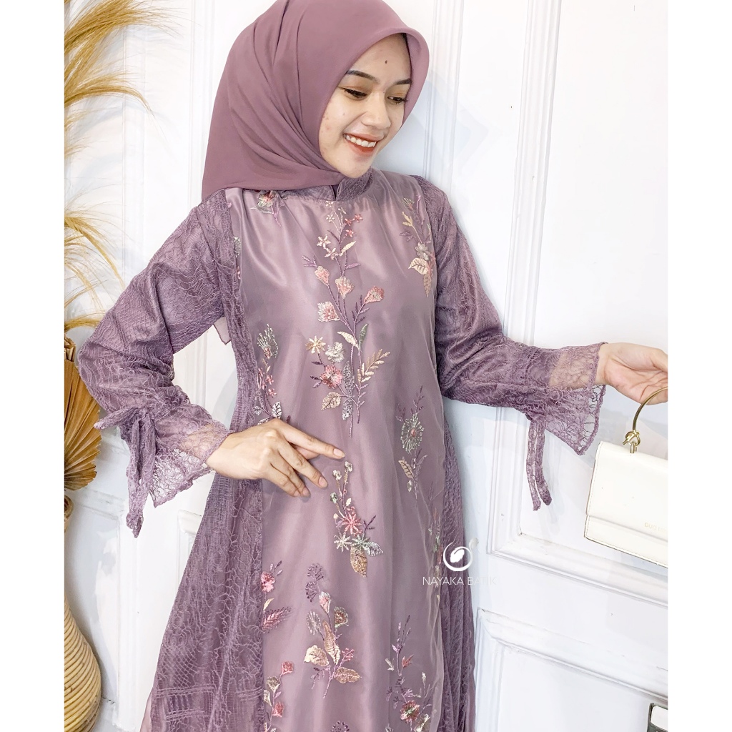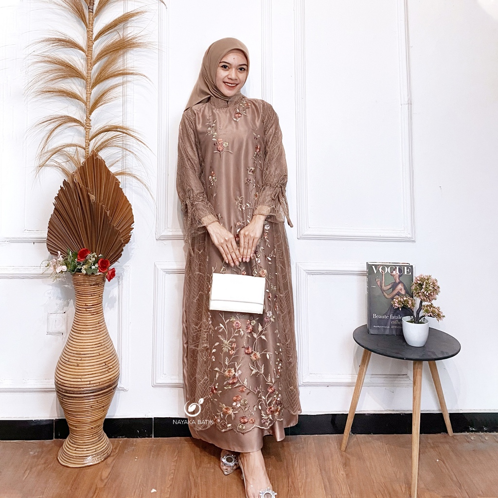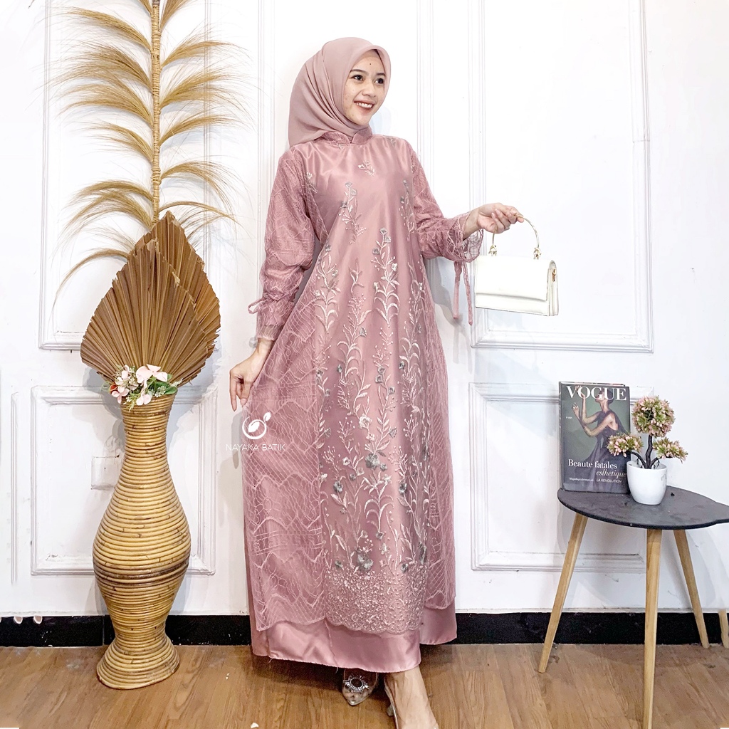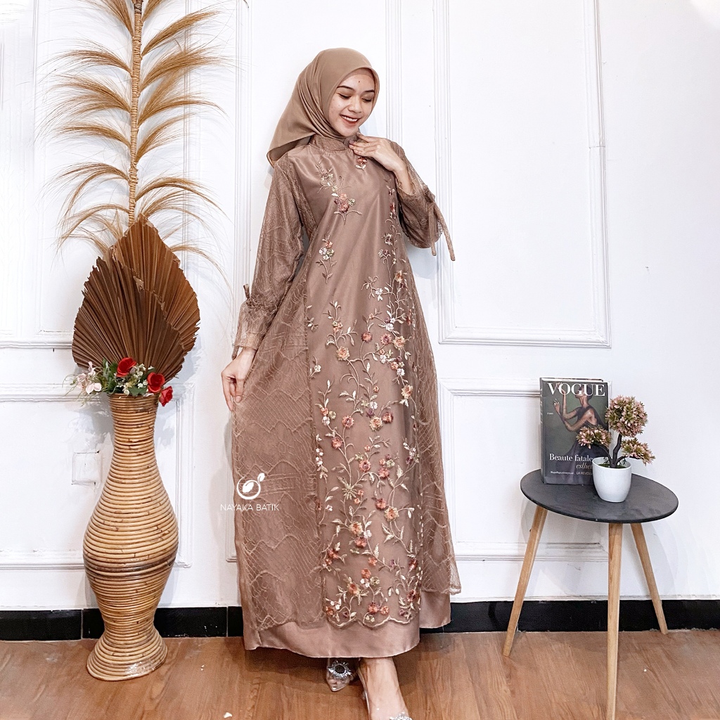 MAXI DRESS AQILA Gamis Wanita Kondangan Modern Dress Tulle Garden Mix Chantily Wudlu Friendly ORIGINAL BEST SELLER