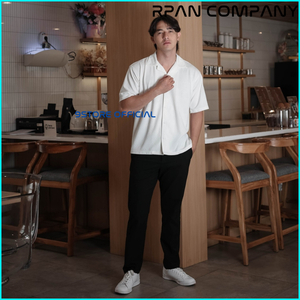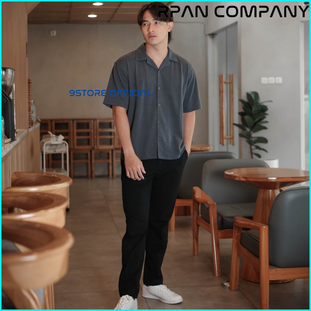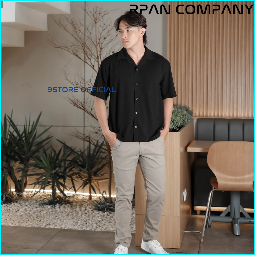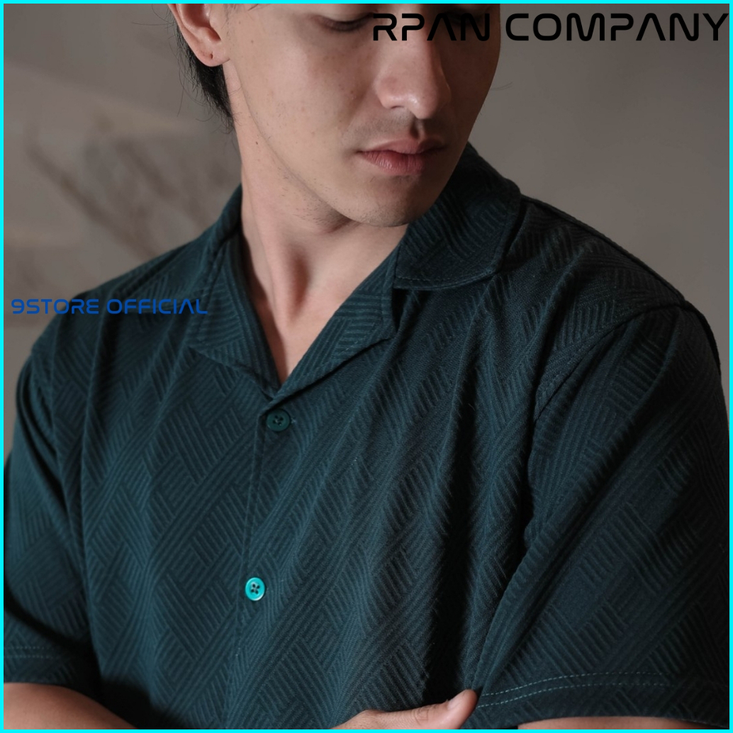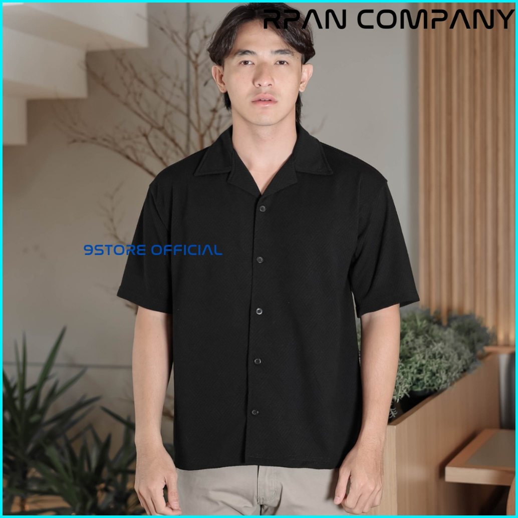 Kemeja Cuban Bowling Shirt Oversized Knit Kemeja Knited Lengan Pendek Pria.