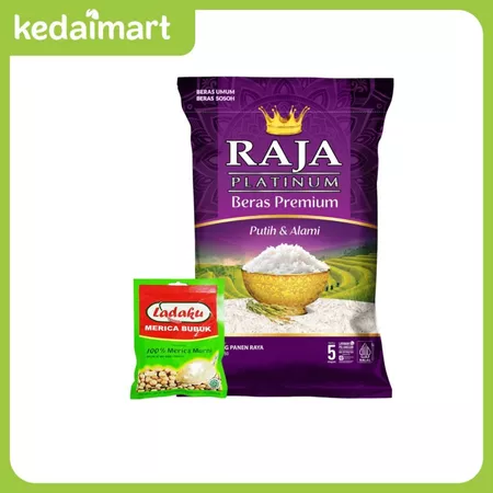 Raja Platinum Beras Premium 5 Kg dan Ladaku Merica Bubuk Pcs