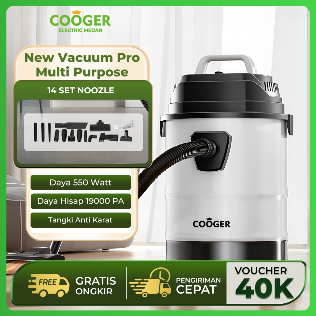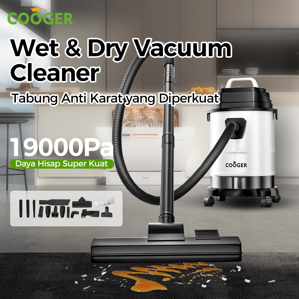 COOGER Vacuum Cleaner 14IN1 Penyedot Debu Basah dan Kering Berbahan Metal Tahan Karat Kapasitas 18L Daya Rendah 550 Watt