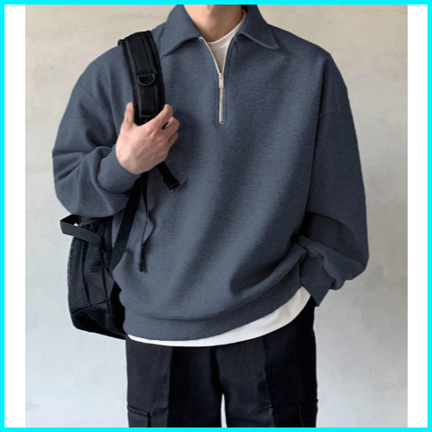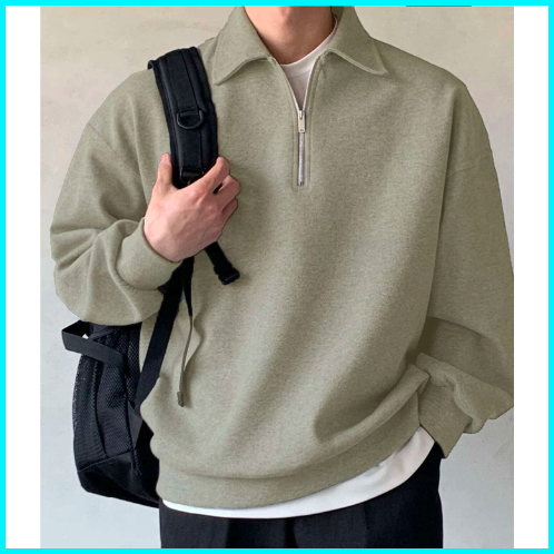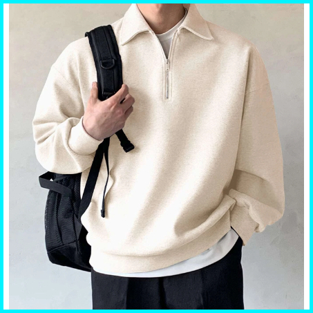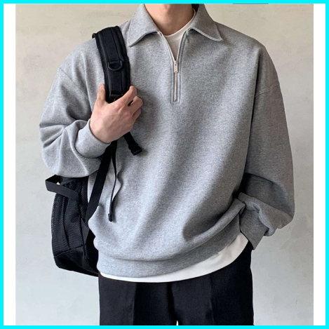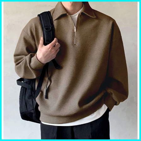 Sweater Rugby Basic Polos Sweater Basic Kerah Resleting Sweater Pria Wanita
