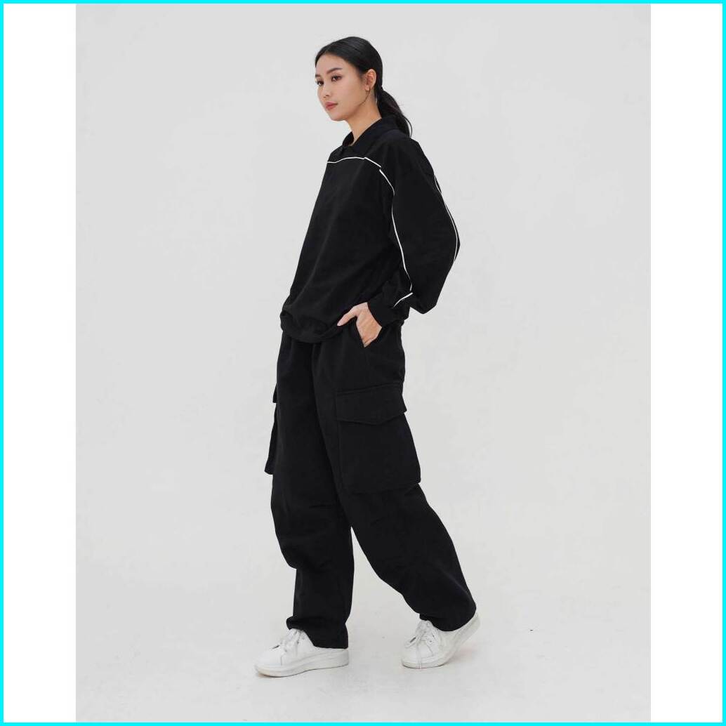 Boxy Piped Polo Long Sleeve - Polo Lengan Panjang Boxy Berlis Abyad Apparel Pro Project