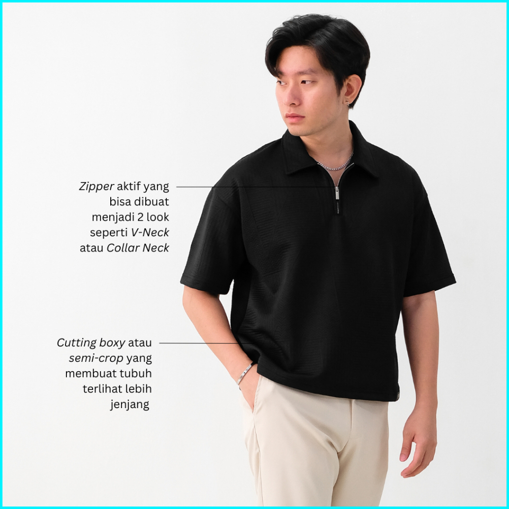 Sanvanina Zuma Zipper Boxy Polo Shirt Kaos Polo Knit Pria Atasan Pria Berkerah Boxy Fit Cutting