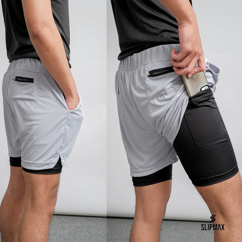 SLIPMAX CELANA RUNNING SPORT DRIFIT PENDEK OLAHRAGA SAKU 2IN1 LARI JOGING GYM FITNESS PRIA