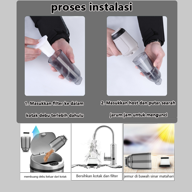 LHADEVSIG 4 in 1 Vacum Cleaner Mobil 3 Filter Penyedot Debu Multifungsi Cordless Vacuum Cleaner Portable Tiup/Hisap/Meng
