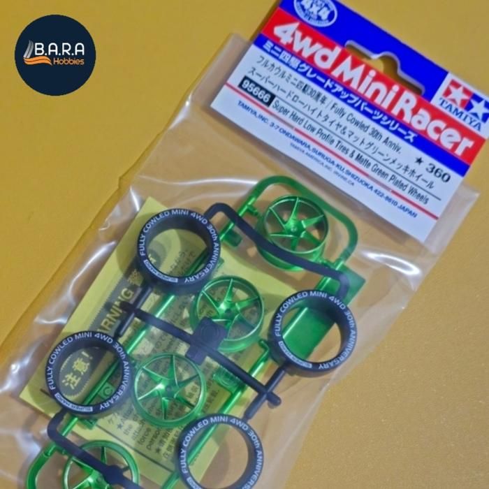 Tamiya 95666 LP Super Hard Tires + Spiral Matte Green Plated Wheels Medium - Original