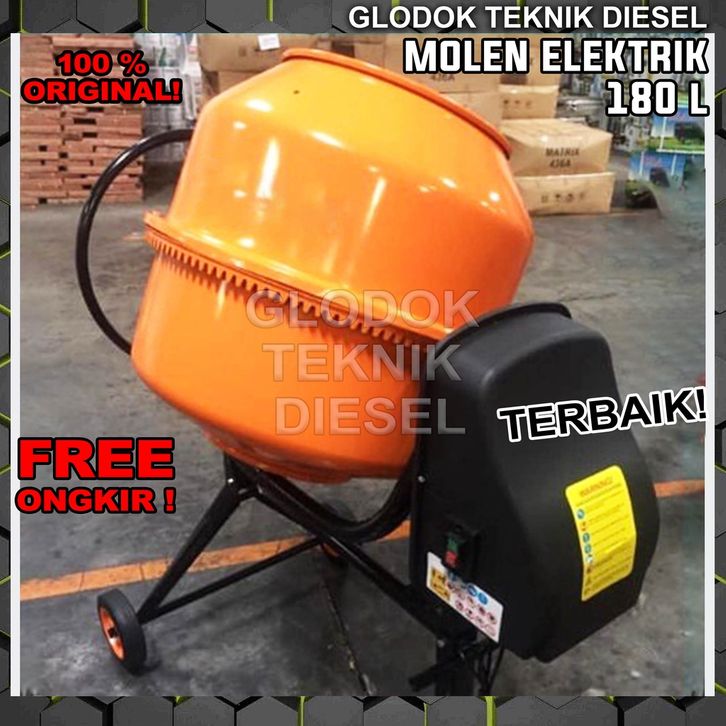 TERLARIS MESIN PENGADUK SEMEN BETON LISTRIK 180 L LITER MOLEN MINI CONCRETE MIXER ORIGINAL TERBAIK