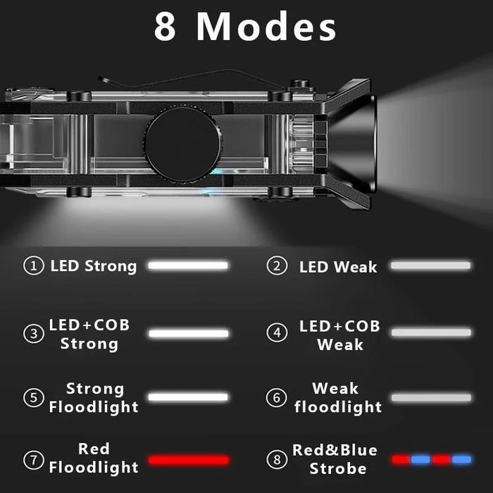 Promo Senter Mini Smiling Shark TIP0060 COB Magnet Keychain Type-C 8modes - Hitam Transparan Elegan