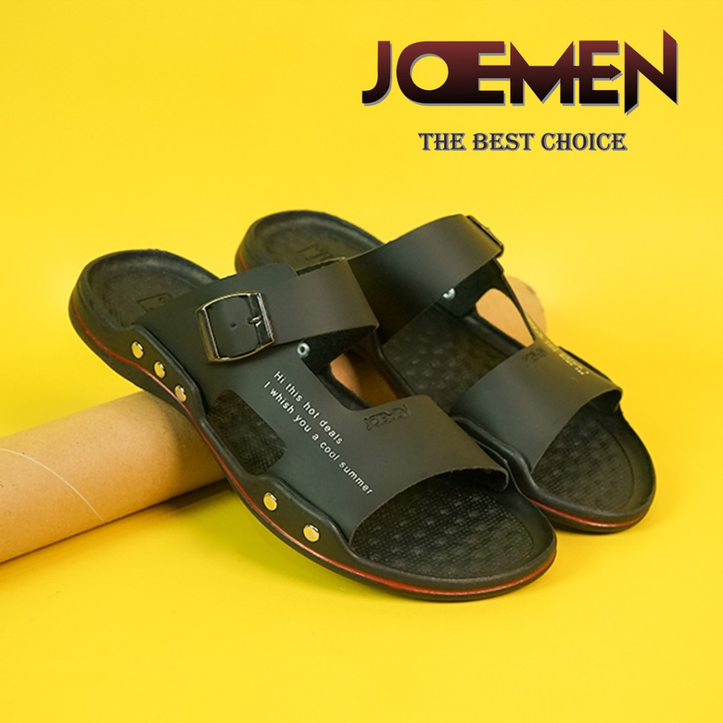 Joemen Sandal Slop Pria Kulit S16 NEW Original 100% Brand Lokal Anti Slip Keren cowok Aman Anti Slip