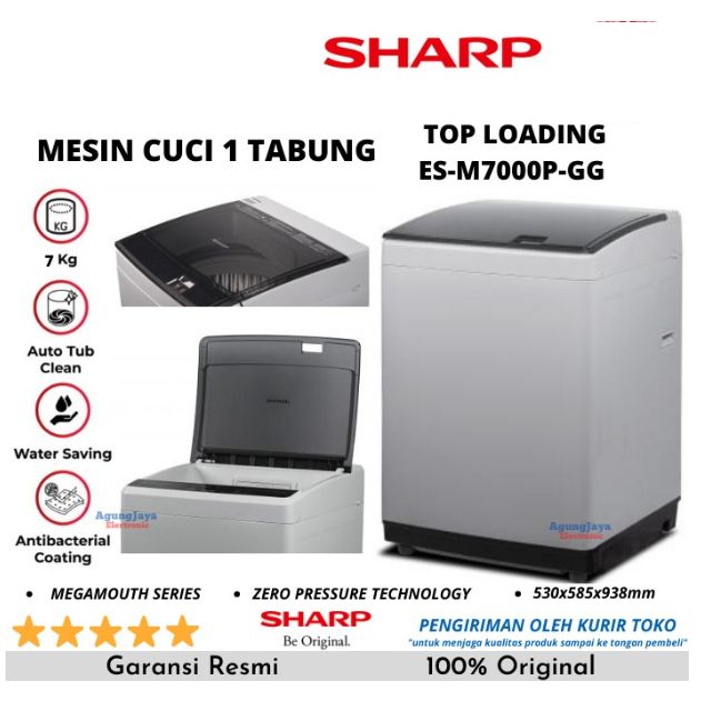 PROMO SHARP Mesin Cuci 1 Tabung 7Kg Top Loading Megamouth ES-M7000P ES M7000 ORIGINAL