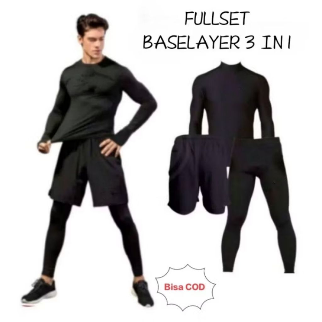 FULL SET PAKAIAN OLAHRAGA BASELAYER BAJU MANSET BASELAYER CELANA PENDEK LEGGING PANJANG PRIA WANITA SPORT FUTSAL LARI GY