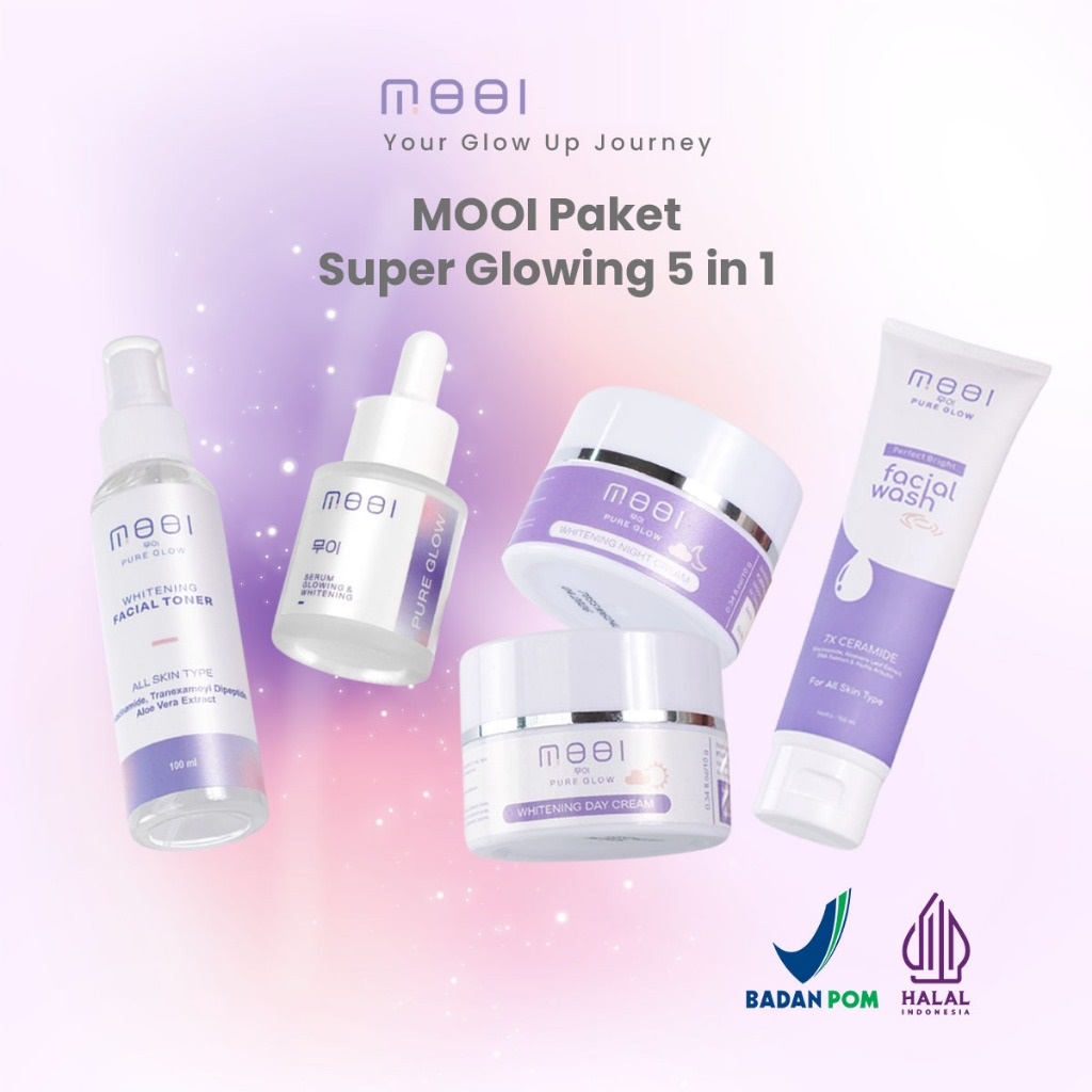 SKINCARE MOOI PAKET LENGKAP SUPER GLOWING 5 IN 1 SERIES SERUM TONER FACIAL WASH DAY CREAM AND NIGHT CREAM PENCERAH WAJAH