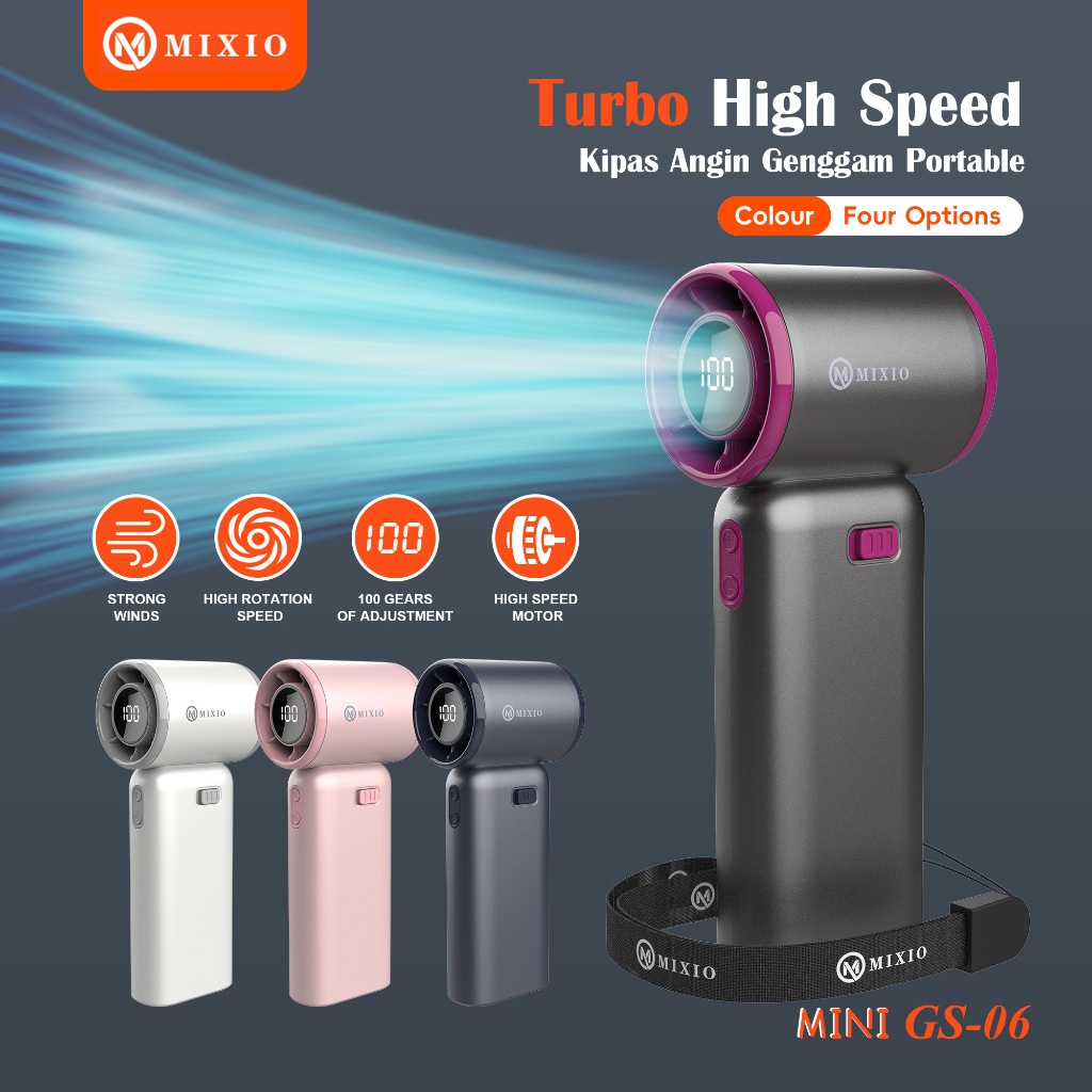 MIXIO GS-06 MINI PORTABLE FAN MINI 4400MAH KIPAS ANGIN TURBO STRONG PORTABLE WORKING TIME UP TO 19 HOURS USB RECHARGEABLE PERSONAL FAN ULTRA-LIGHT 100 SPEED LEVELS 21000RPM