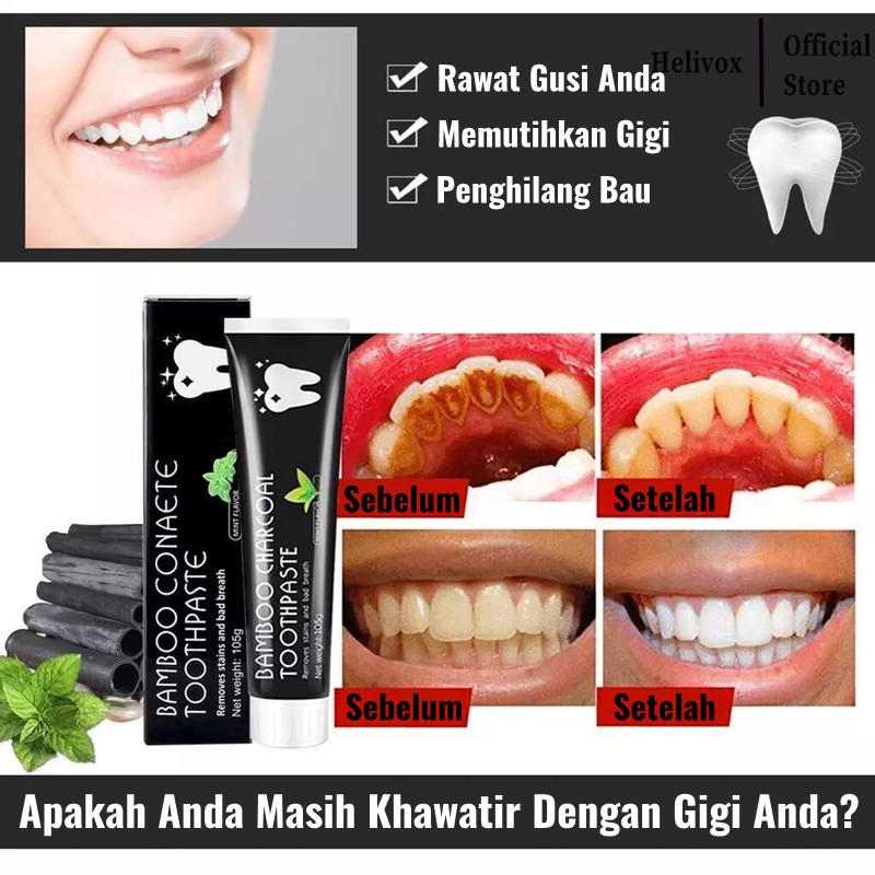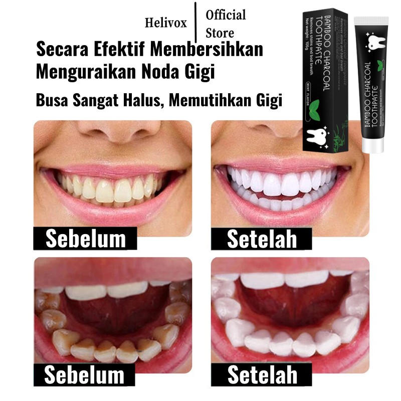 HELIVOX Pembersih gigi kuning dan karang Pasta gigi pemutih Penghilang kerak gigi Penghilang plak dan karang gigi Pemuti