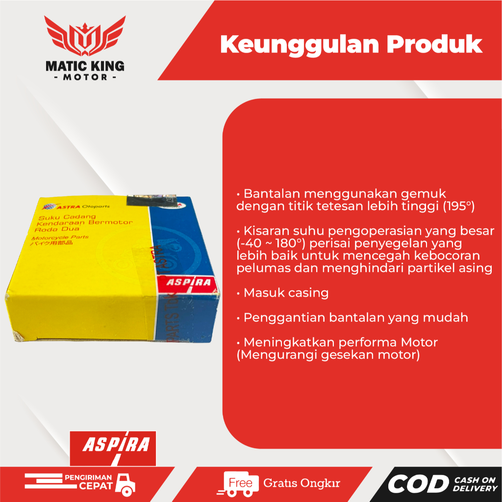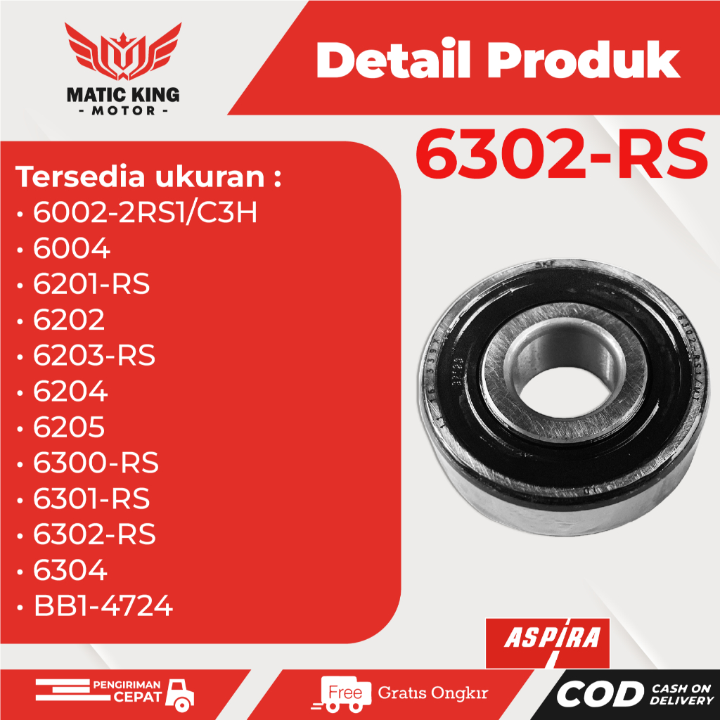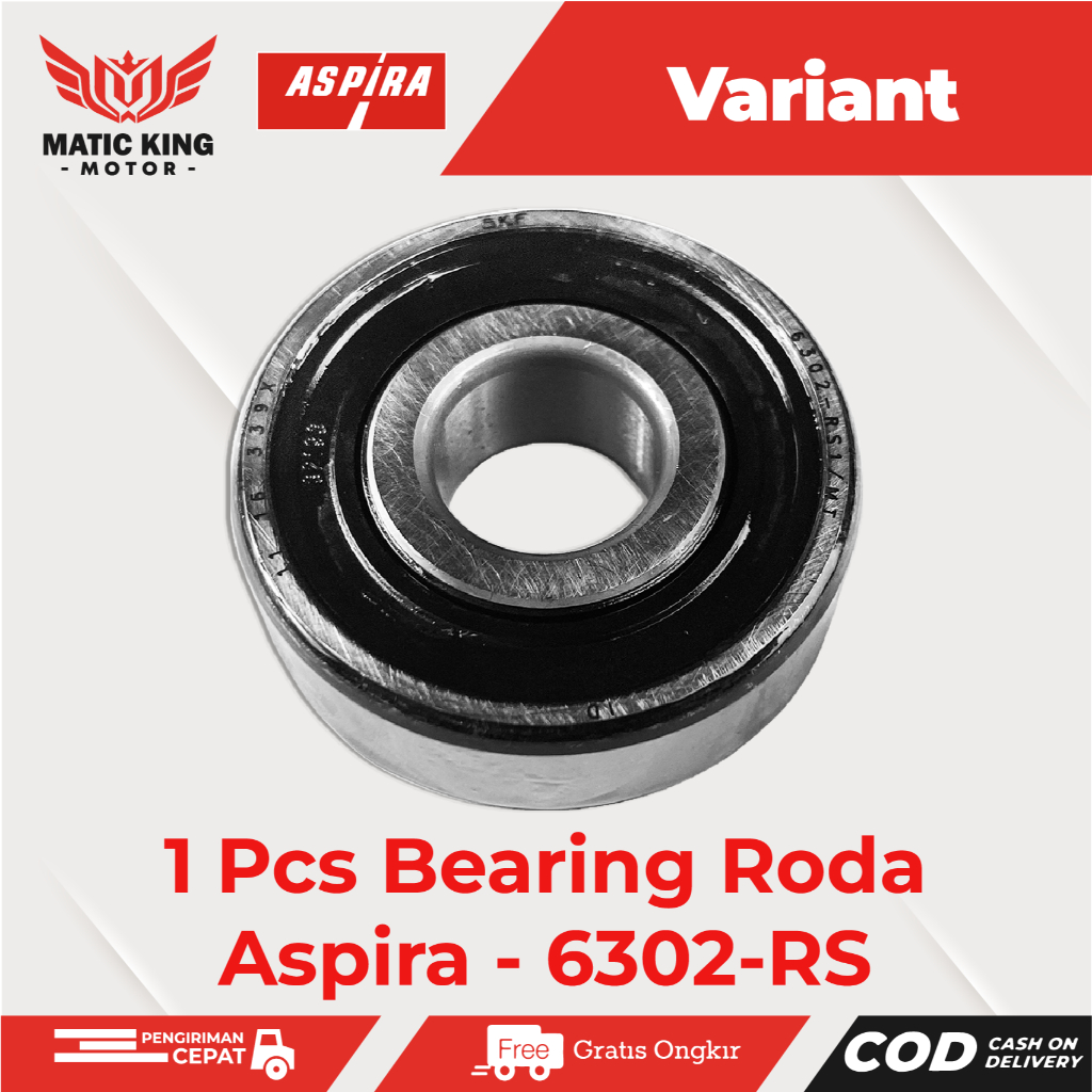 BEARING LAHER RODA DEPAN BELAKANG MESIN CVT RASIO 6302 2RS ASPIRA