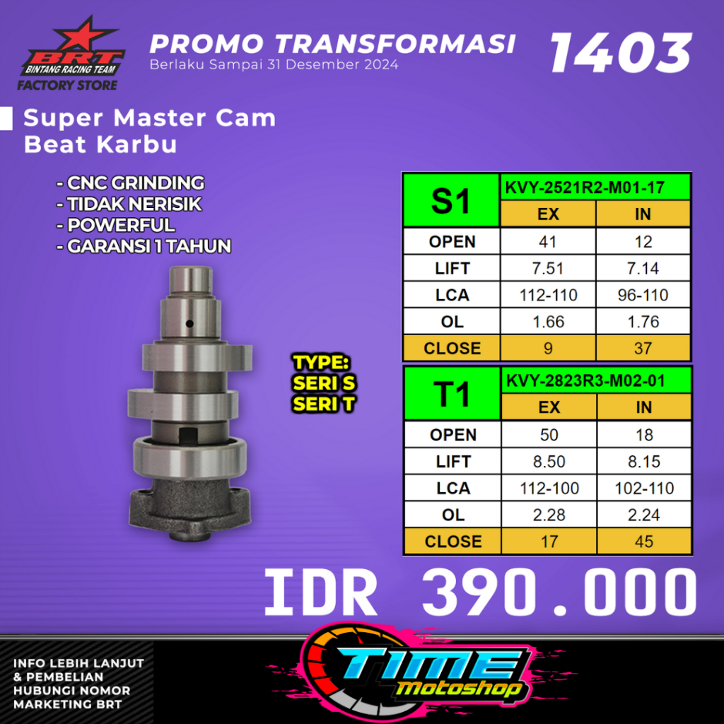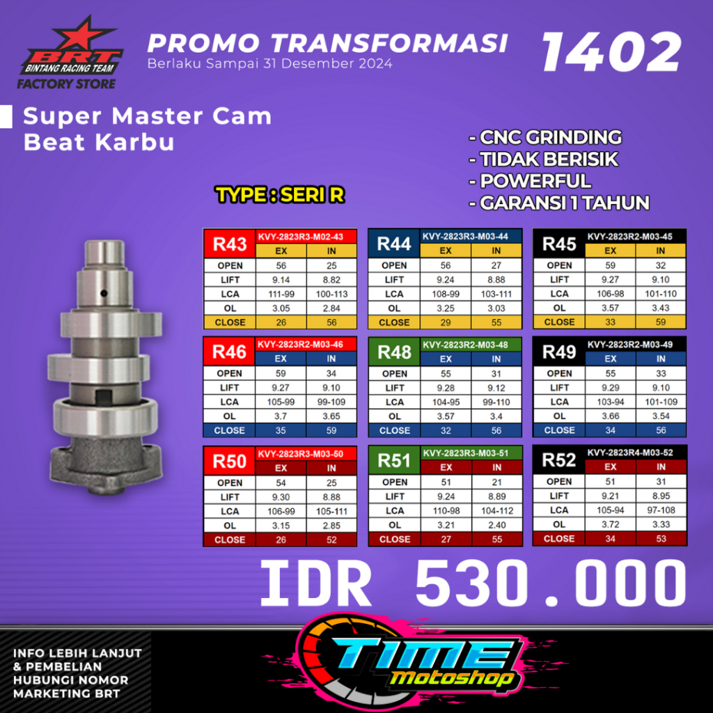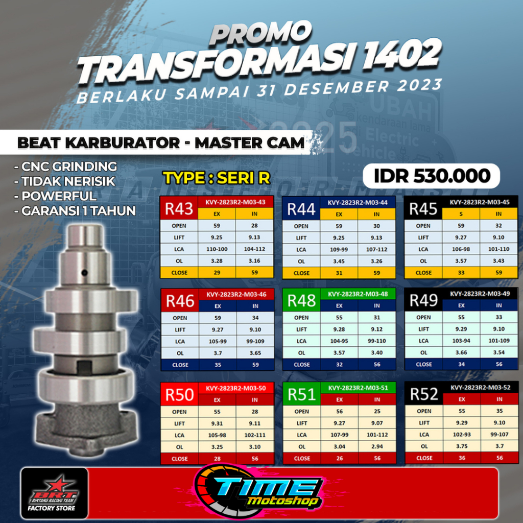 NOKEN AS BRT BEAT KARBU / SCOOPY / SPACY KVY KARBU S1/S8/T1/R1/R43/R44/R45/R46/R48/R49/R50/R51/R52) MASTER CAM