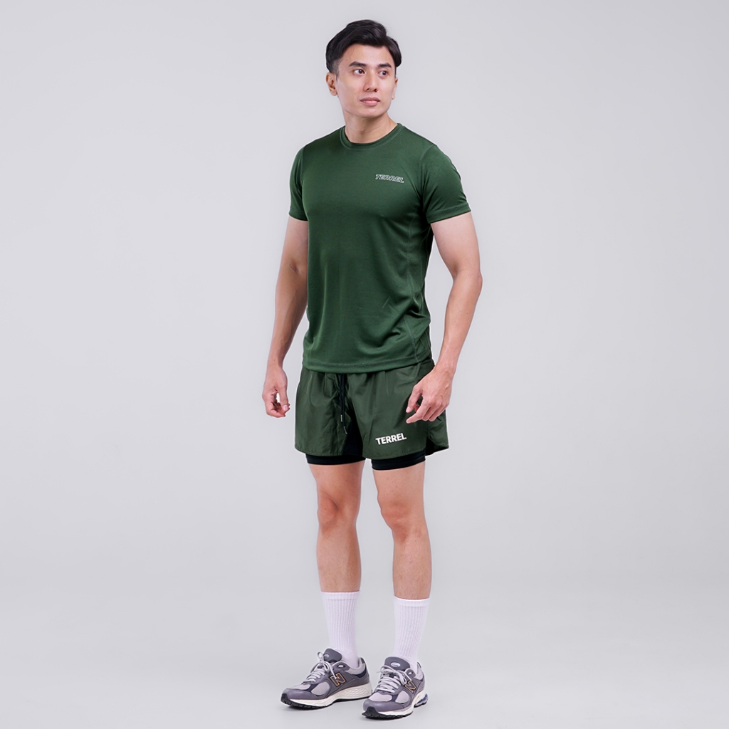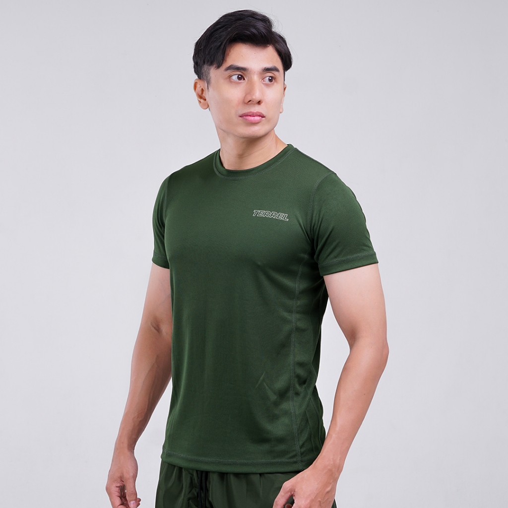 TERREL SPORTSWEAR BASIC TEE GREEN KAOS OLAHRAGA DRY FIT LARI RUNNING GYM PRIA LENGAN PENDEK